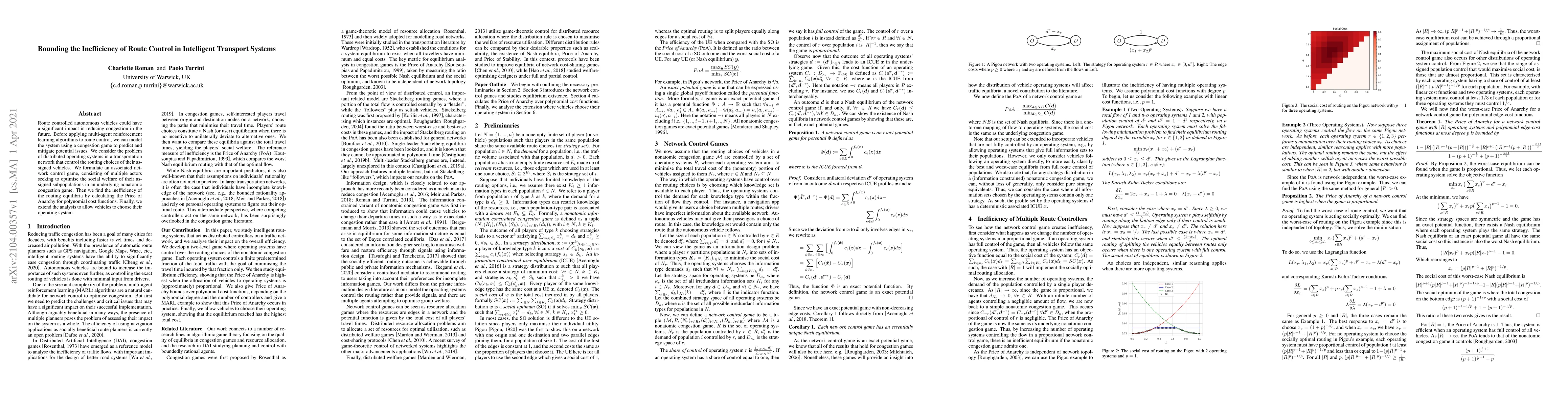 Route controlled autonomous vehicles could have a significant impact in reducing congestion in the future. Before applying multi-agent reinforcement learning algorithms to route control, we can model the system using a congestion game to predict and mitigate potential issues. We consider the problem of distributed operating systems in a transportation network that control the routing choices of their assigned vehicles. We formulate an associated network control game, consisting of multiple actors seeking to optimise the social welfare of their assigned subpopulations in an underlying nonatomic congestion game. Then we find the inefficiency of the routing equilibria by calculating the Price of Anarchy for polynomial cost functions. Finally, we extend the analysis to allow vehicles to choose their operating system.