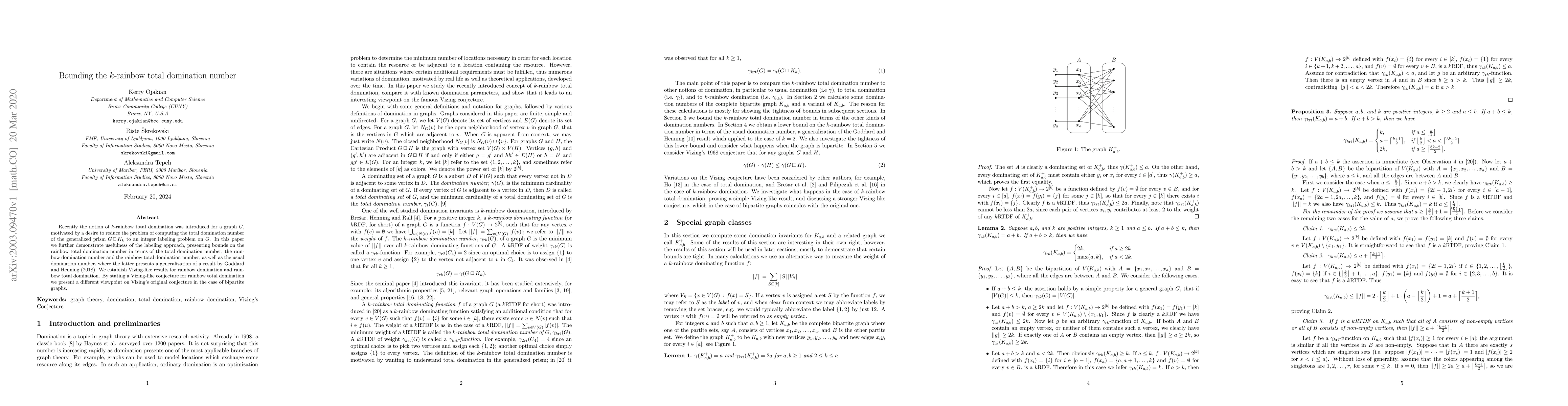 This paper explores the concept of $k$-rainbow total domination in graphs, providing bounds relating it to the total domination number, rainbow domination, and rainbow total domination. It also introduces Vizing-like results and conjectures for these concepts, offering new insights into the generalized prism graph problem.
