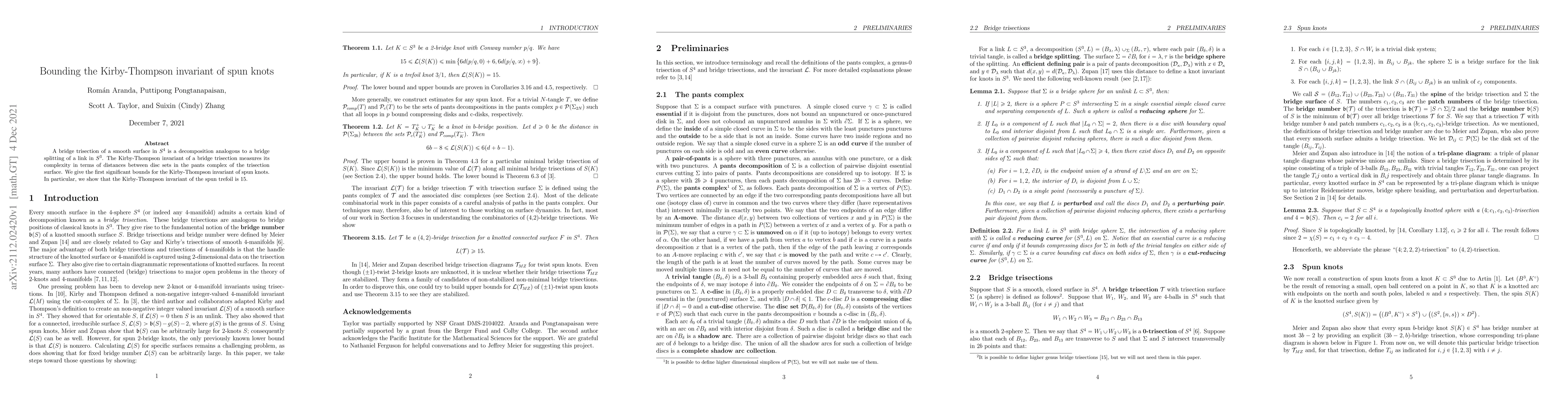 This paper provides the first significant bounds for the Kirby-Thompson invariant of spun knots, demonstrating that the invariant for the spun trefoil is exactly 15. The study utilizes bridge trisections of smooth surfaces in $S^4$ to measure the complexity of spun knots.