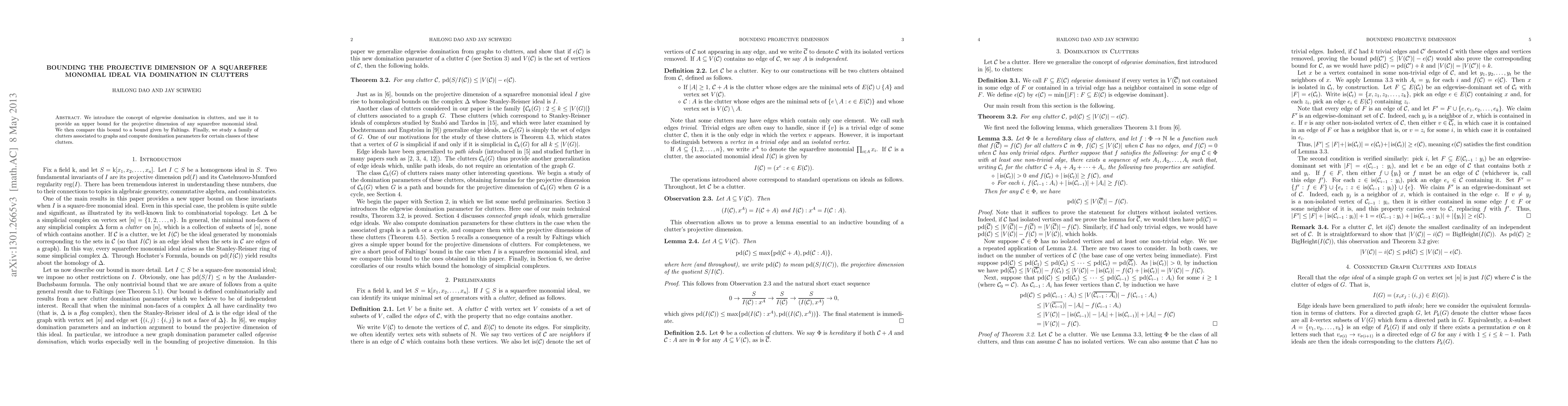 We introduce the concept of edgewise domination in clutters, and use it to provide an upper bound for the projective dimension of any squarefree monomial ideal. We then use a simple recursion to recover a formula for the projective dimension of a monomial ideal associated to a chordal clutter, as defined by Woodroofe in \cite{russ}. We also study a family of clutters associated to graphs, and show that these clutters are chordal if and only if the associated graph is. Finally, we compute domination parameters for certain classes of these clutters.
