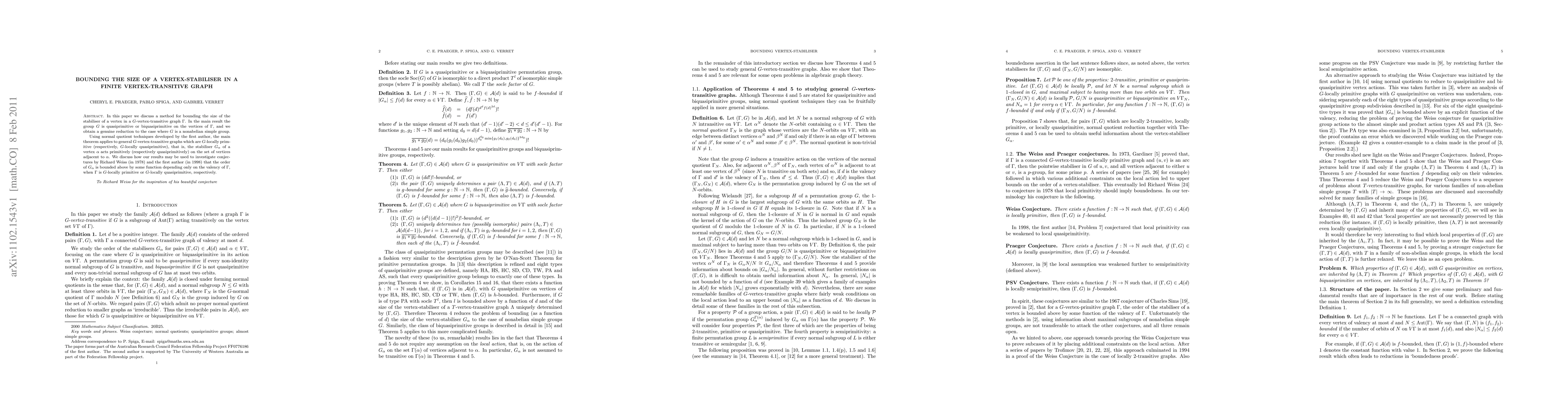 This paper develops a method to bound the size of a vertex-stabiliser in a finite vertex-transitive graph, applying to quasiprimitive or biquasiprimitive graphs with a nonabelian simple group action.