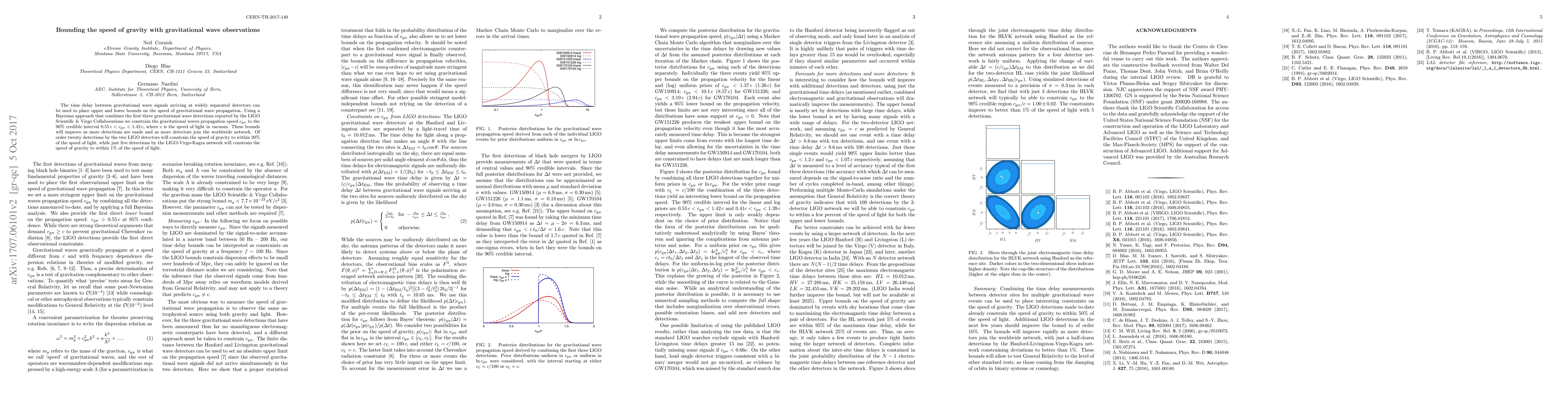The time delay between gravitational wave signals arriving at widely separated detectors can be used to place upper and lower bounds on the speed of gravitational wave propagation. Using a Bayesian approach that combines the first three gravitational wave detections reported by the LIGO collaboration we constrain the gravitational waves propagation speed c_gw to the 90% credible interval 0.55 c < c_gw < 1.42 c, where c is the speed of light in vacuum. These bounds will improve as more detections are made and as more detectors join the worldwide network. Of order twenty detections by the two LIGO detectors will constrain the speed of gravity to within 20% of the speed of light, while just five detections by the LIGO-Virgo-Kagra network will constrain the speed of gravity to within 1% of the speed of light.