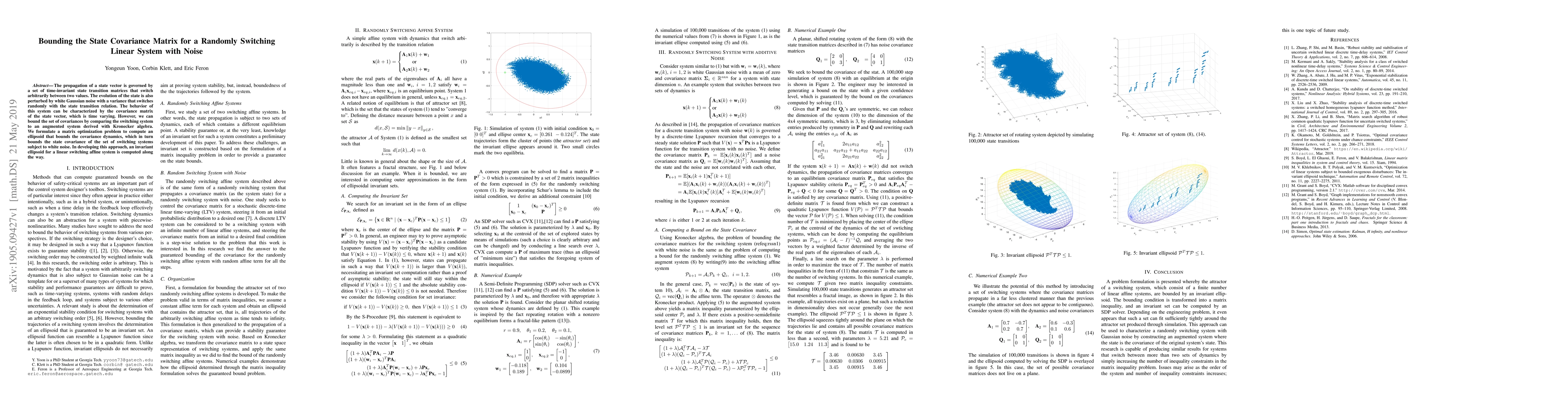 Researchers developed a method to bound the state covariance matrix for systems with randomly switching linear transitions and Gaussian noise, using an augmented system derived from Kronecker algebra.