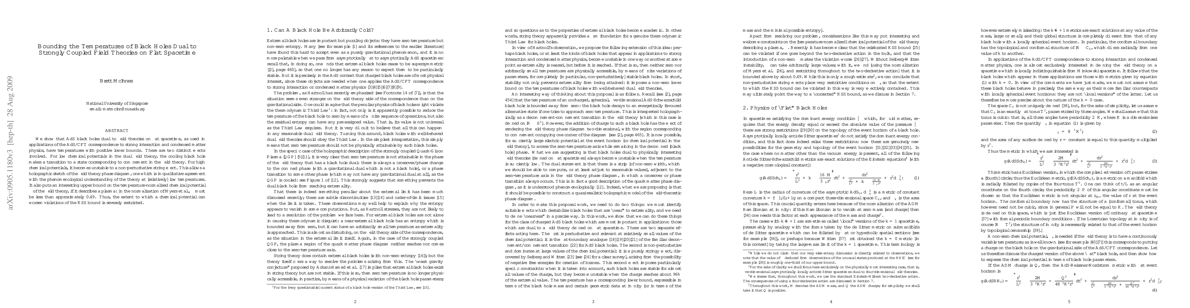 We show that AdS black holes dual to field theories on flat spacetime, as used in applications of the AdS/CFT correspondence to strong interaction and condensed matter physics, have temperatures with positive lower bounds. There are two distinct effects involved. For low chemical potentials in the dual field theory, the cooling black hole makes a transition to a state corresponding to confinement in the field theory. For high chemical potentials, it becomes unstable to a non-perturbative string effect. This allows a holographic sketch of the field theory phase diagram, one which is in qualitative agreement with the phenomenological understanding of the theory at [relatively] low temperatures. It also puts an interesting upper bound on the temperature-normalized chemical potential $\bar{\mu}$ of the field theory, if it describes a plasma: in the normalization of Myers et al., $\bar{\mu}$ must be less than approximately 0.49. Thus, the extent to which a chemical potential can worsen violations of the KSS bound is severely restricted.