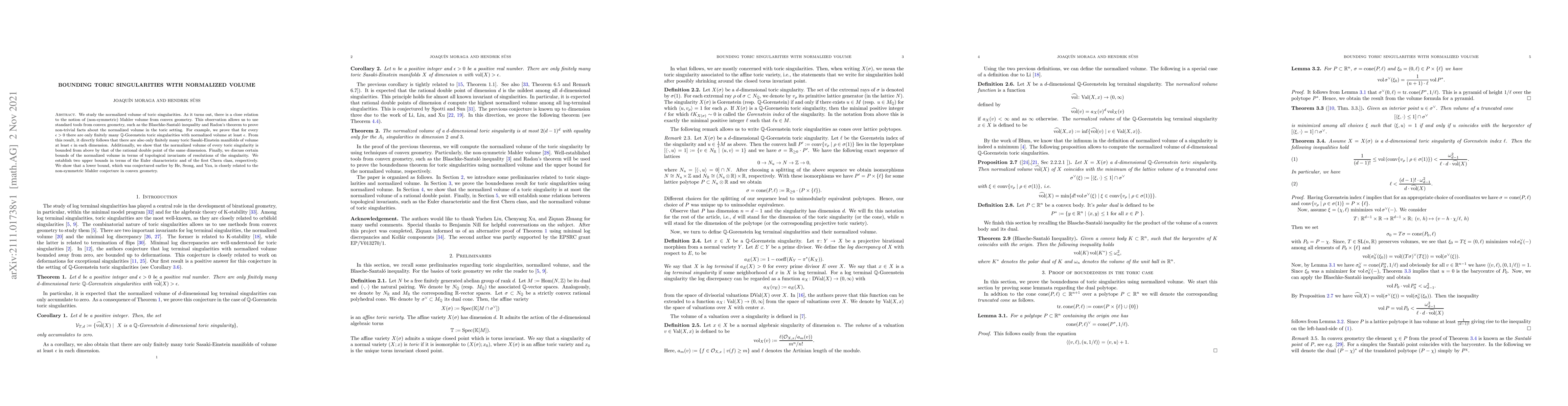 This paper explores the normalized volume of toric singularities, linking it to convex geometry's Mahler volume and using tools like the Blaschke-Santaló inequality to demonstrate finiteness results for $\mathbb{Q}$-Gorenstein toric singularities and Sasaki-Einstein manifolds. It also establishes upper bounds for the normalized volume in terms of topological invariants and discusses a conjectured lower bound related to the non-symmetric Mahler conjecture.