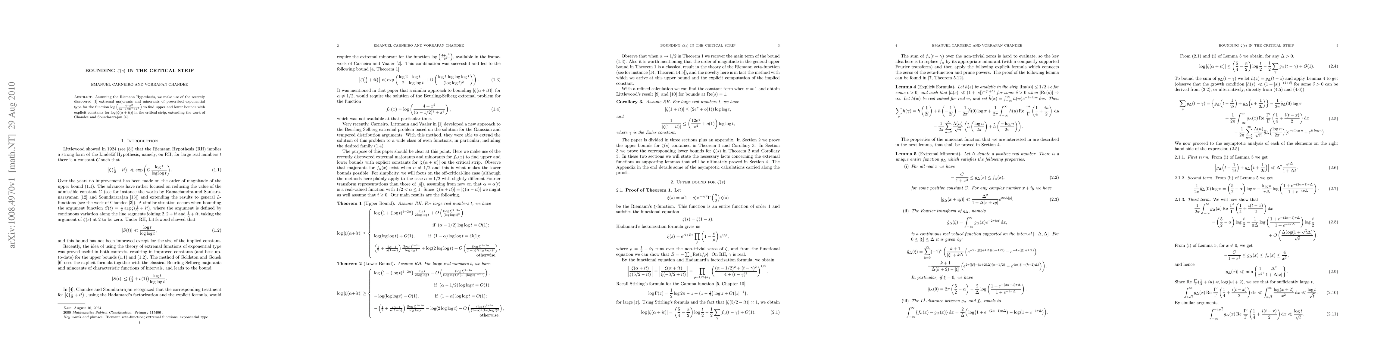 Assuming the Riemann Hypothesis, we make use of the recently discovered \cite{CLV} extremal majorants and minorants of prescribed exponential type for the function $\log\left(\tfrac{4 + x^2}{(\alpha-1/2)^2 + x^2}\right)$ to find upper and lower bounds with explicit constants for $\log|\zeta(\alpha + it)|$ in the critical strip, extending the work of Chandee and Soundararajan \cite{CS}.