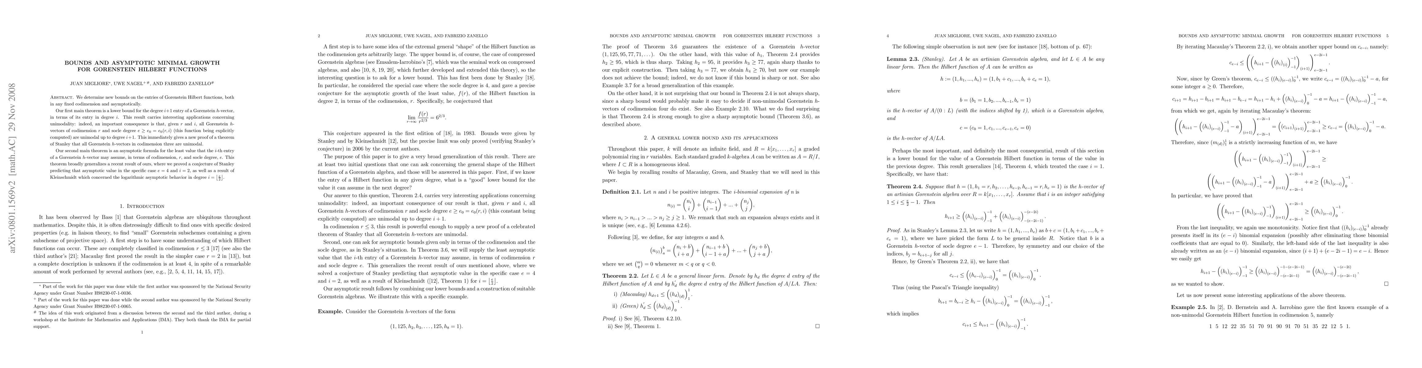 This paper establishes new bounds for the entries of Gorenstein Hilbert functions, both in fixed codimension and asymptotically. It provides a lower bound for the degree $i+1$ entry in terms of the $i$-th entry, proving unimodality for Gorenstein $h$-vectors under certain conditions. Additionally, it presents an asymptotic formula for the least value of the $i$-th entry in terms of codimension and socle degree, generalizing previous results.