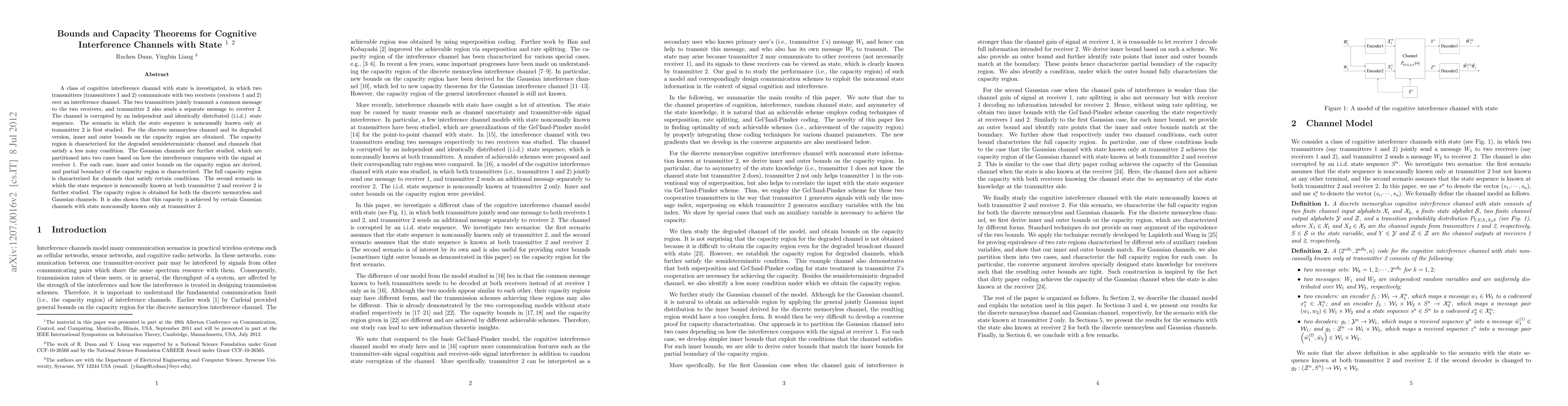 This paper investigates cognitive interference channels with state, deriving inner and outer bounds on the capacity region for both discrete memoryless and Gaussian channels. It characterizes the capacity region under different conditions, particularly when state information is available noncausally at either transmitter 2 or both transmitter and receiver 2.