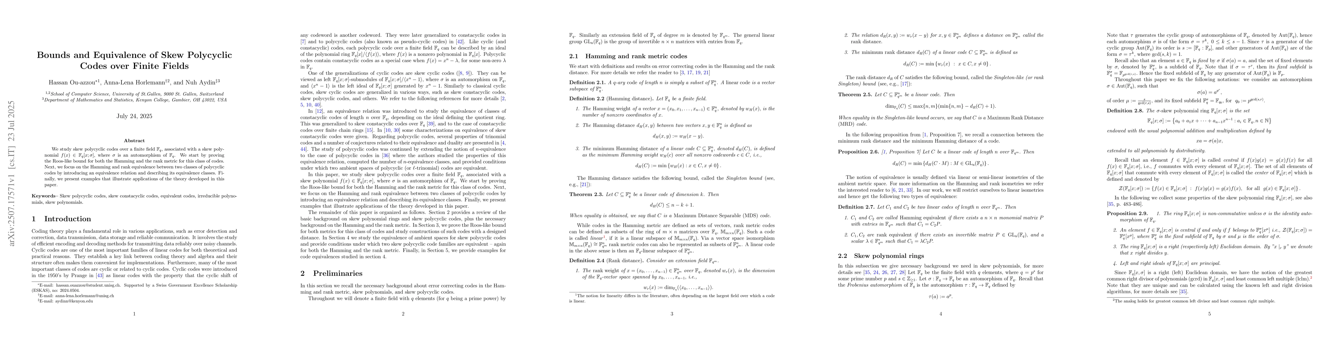 We study skew polycyclic codes over a finite field $\mathbb{F}_q$, associated with a skew polynomial $f(x) \in \mathbb{F}_q[x;\sigma]$, where $\sigma$ is an automorphism of $\mathbb{F}_q$. We start by proving the Roos-like bound for both the Hamming and the rank metric for this class of codes. Next, we focus on the Hamming and rank equivalence between two classes of polycyclic codes by introducing an equivalence relation and describing its equivalence classes. Finally, we present examples that illustrate applications of the theory developed in this paper.