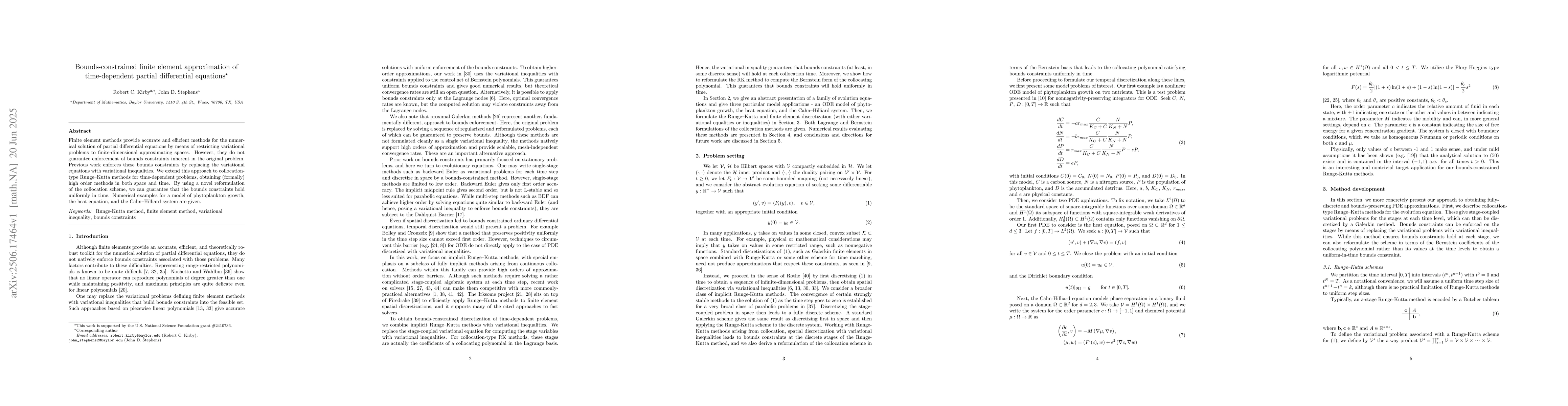 Finite element methods provide accurate and efficient methods for the numerical solution of partial differential equations by means of restricting variational problems to finite-dimensional approximating spaces. However, they do not guarantee enforcement of bounds constraints inherent in the original problem. Previous work enforces these bounds constraints by replacing the variational equations with variational inequalities. We extend this approach to collocation-type Runge-Kutta methods for time-dependent problems, obtaining (formally) high order methods in both space and time. By using a novel reformulation of the collocation scheme, we can guarantee that the bounds constraints hold uniformly in time. Numerical examples for a model of phytoplankton growth, the heat equation, and the Cahn-Hilliard system are given.
