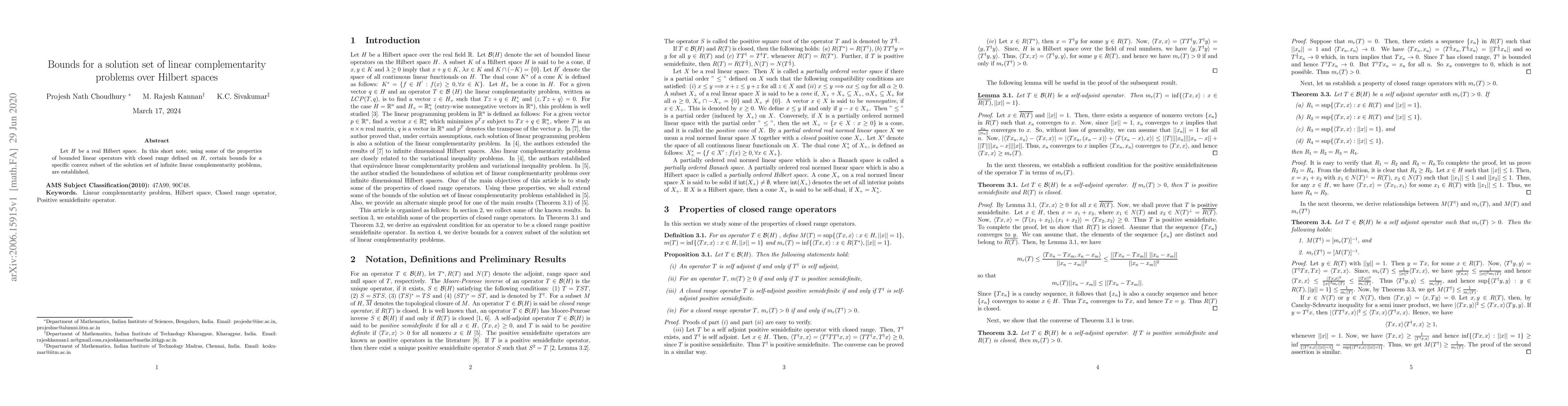 This paper establishes bounds for a specific convex subset of the solution set of infinite linear complementarity problems in a real Hilbert space, utilizing properties of bounded linear operators with closed range.