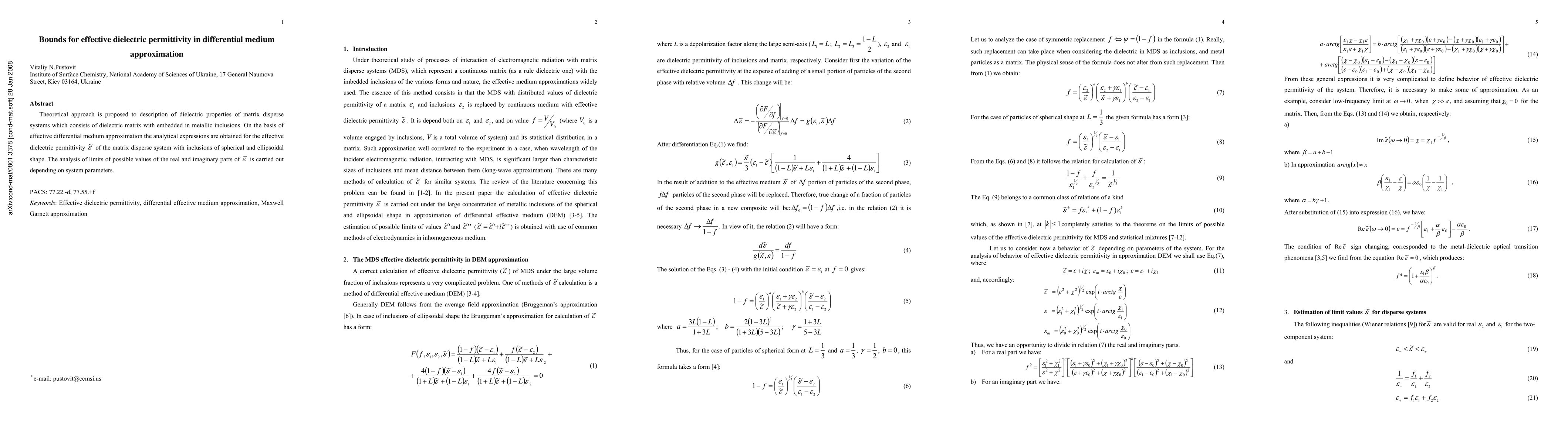 This paper proposes a theoretical approach to describe the dielectric properties of matrix disperse systems with metallic inclusions, deriving analytical expressions for effective dielectric permittivity using the effective differential medium approximation. It analyzes the bounds of the real and imaginary parts of the effective dielectric permittivity based on system parameters.