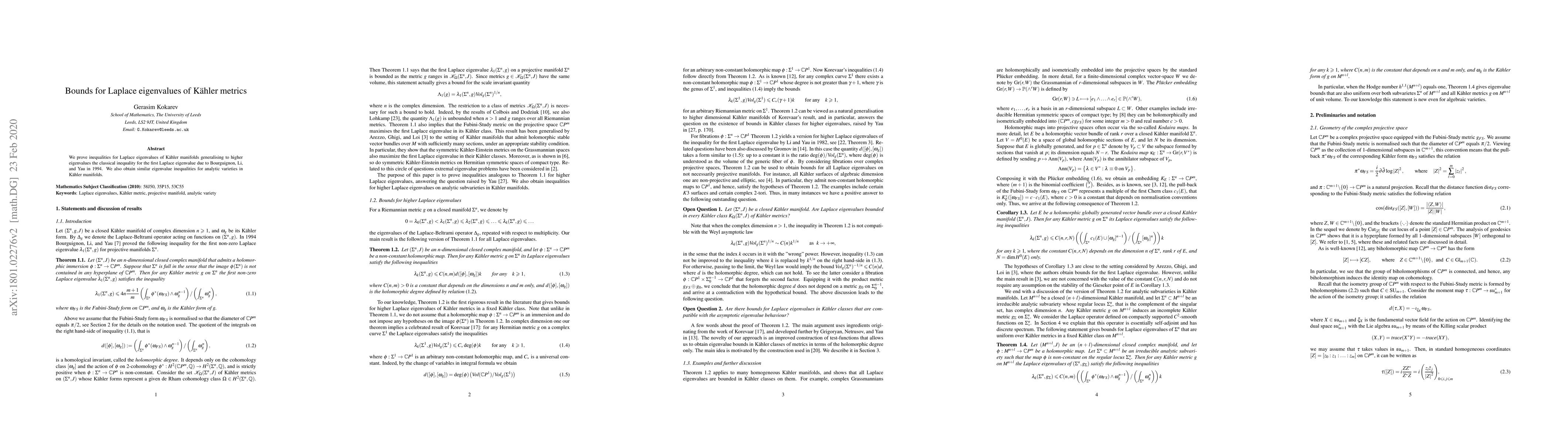 We prove inequalities for Laplace eigenvalues of Kaehler manifolds generalising to higher eigenvalues the classical inequality for the first Laplace eigenvalue due to Bourguignon, Li, and Yau in 1994. We also obtain similar inequalities for analytic varieties in Kaehler manifolds.