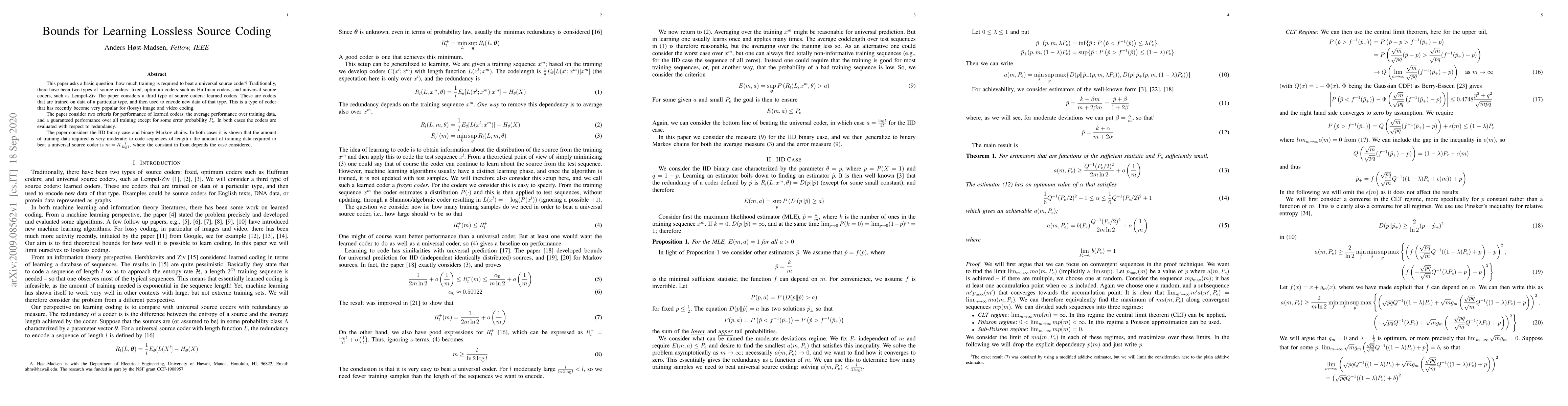 This paper asks a basic question: how much training is required to beat a universal source coder? Traditionally, there have been two types of source coders: fixed, optimum coders such as Huffman coders; and universal source coders, such as Lempel-Ziv The paper considers a third type of source coders: learned coders. These are coders that are trained on data of a particular type, and then used to encode new data of that type. This is a type of coder that has recently become very popular for (lossy) image and video coding. The paper consider two criteria for performance of learned coders: the average performance over training data, and a guaranteed performance over all training except for some error probability $P_e$. In both cases the coders are evaluated with respect to redundancy. The paper considers the IID binary case and binary Markov chains. In both cases it is shown that the amount of training data required is very moderate: to code sequences of length $l$ the amount of training data required to beat a universal source coder is $m=K\frac{l}{\log l}$, where the constant in front depends the case considered.