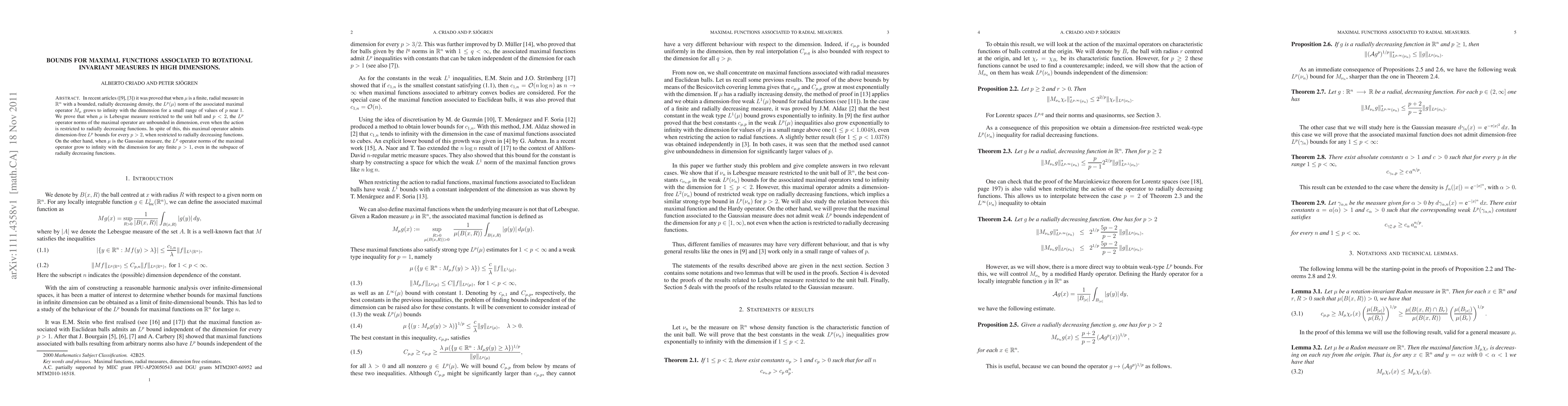 The paper proves that the $L^p$ operator norms of maximal operators associated with certain measures grow to infinity with dimension for a range of p values, but admits dimension-free bounds for p > 2.