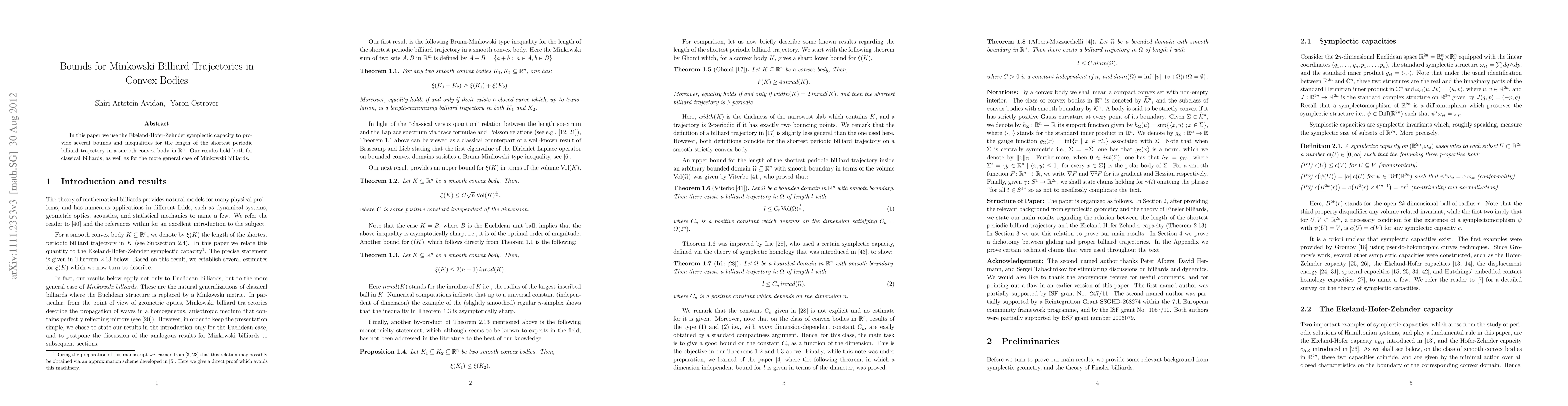 The paper introduces a novel approach using symplectic capacities to bound billiard trajectories in convex bodies, extending previous work to Minkowski billiards.