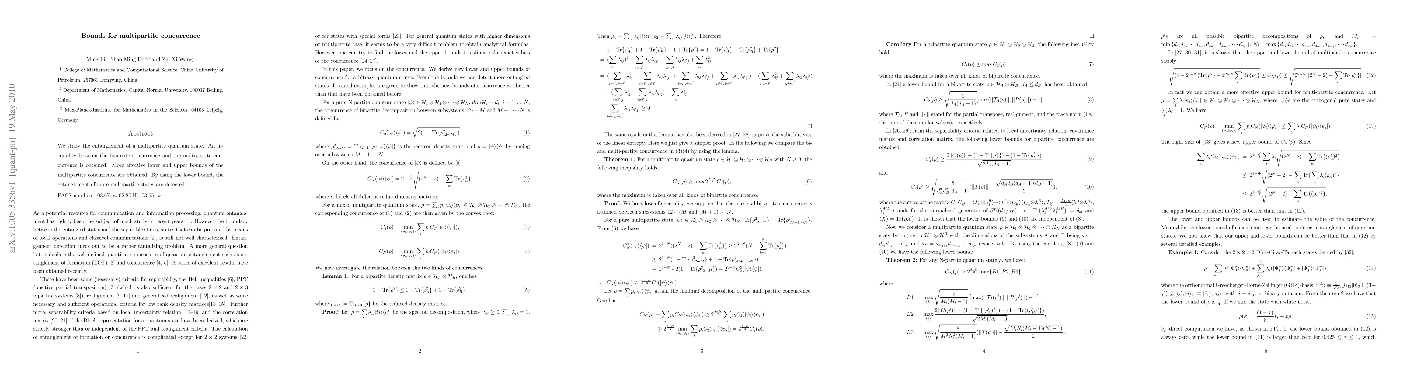 Researchers found bounds for measuring entanglement in multipartite quantum states, improving detection capabilities. They discovered more effective lower and upper limits for the concurrence of these states.