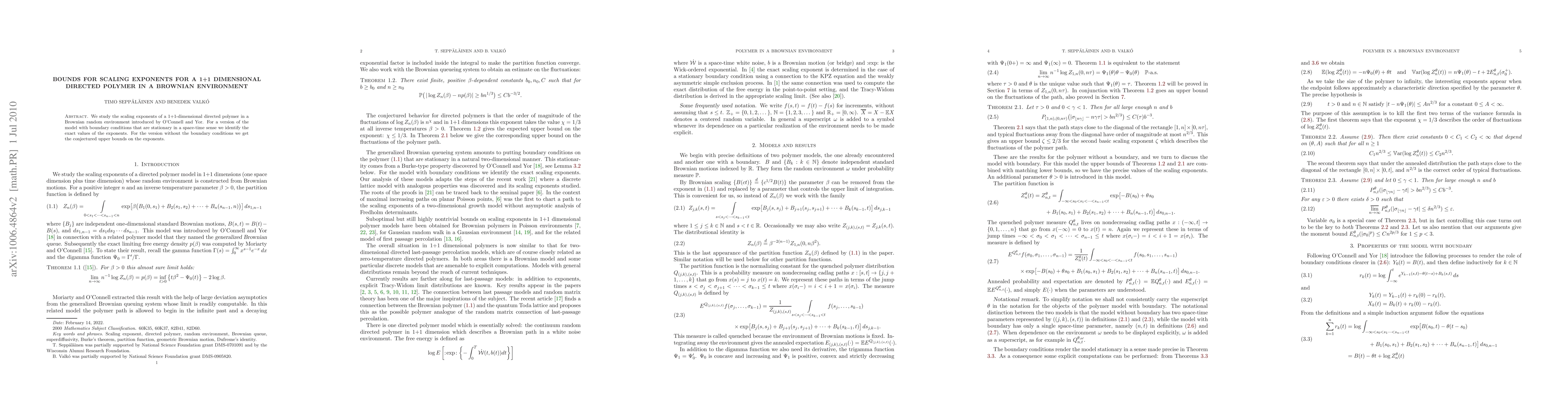 Researchers study the behavior of a 1+1-dimensional directed polymer in a Brownian environment, identifying exact scaling exponents for one version and upper bounds for another.