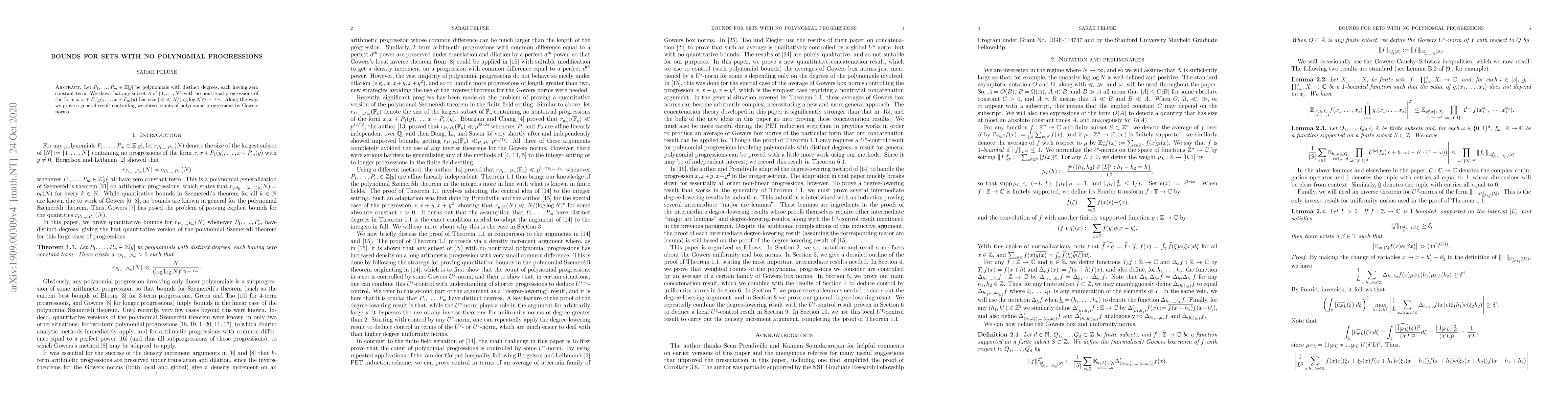 Let $P_1,\dots,P_m\in\mathbb{Z}[y]$ be polynomials with distinct degrees, each having zero constant term. We show that any subset $A$ of $\{1,\dots,N\}$ with no nontrivial progressions of the form $x,x+P_1(y),\dots,x+P_m(y)$ has size $|A|\ll N/(\log\log{N})^{c_{P_1,\dots,P_m}}$. Along the way, we prove a general result controlling weighted counts of polynomial progressions by Gowers norms.