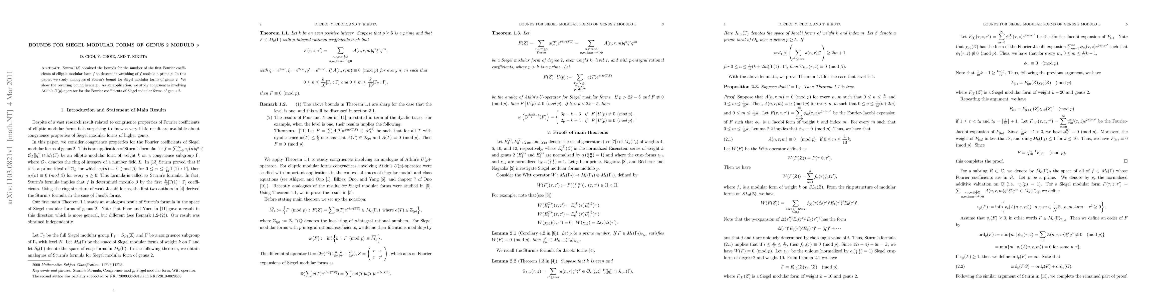 This paper establishes sharp bounds for the first Fourier coefficients of Siegel modular forms of genus 2, analogous to Sturm's results for elliptic modular forms, and explores congruences involving Atkin's $U(p)$-operator for these coefficients.