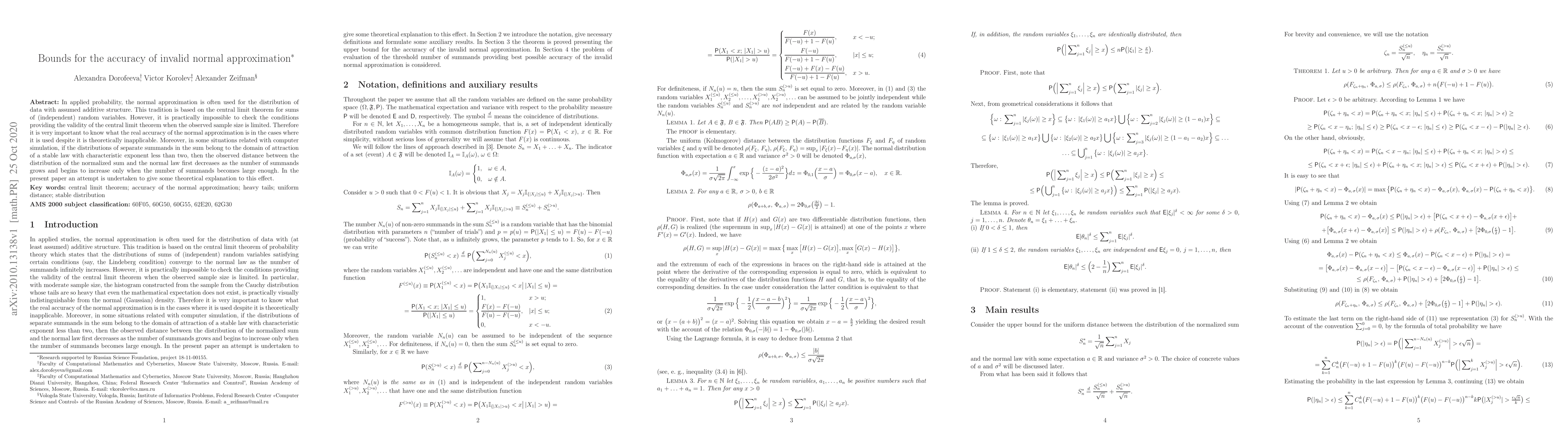 This paper investigates the accuracy of the normal approximation when it is theoretically invalid, providing bounds for its precision in practical scenarios. It also explains the phenomenon where the distance between the normalized sum's distribution and the normal law first decreases before increasing with the number of summands.