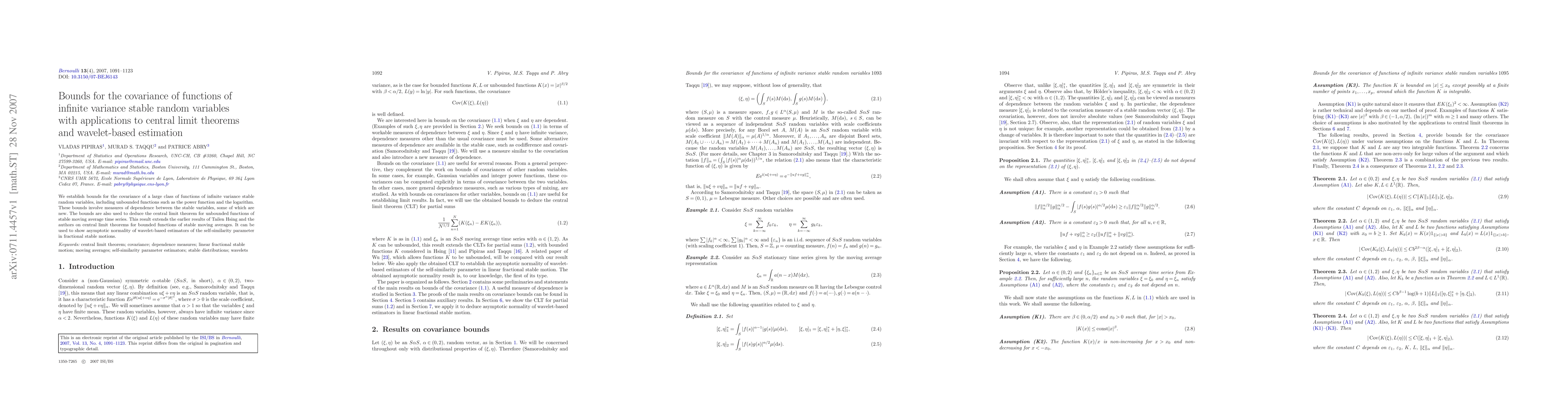 This paper establishes new bounds for the covariance of functions of infinite variance stable random variables, including unbounded functions. These bounds extend central limit theorems and are applied to demonstrate the asymptotic normality of wavelet-based estimators for self-similarity parameters in fractional stable motions.
