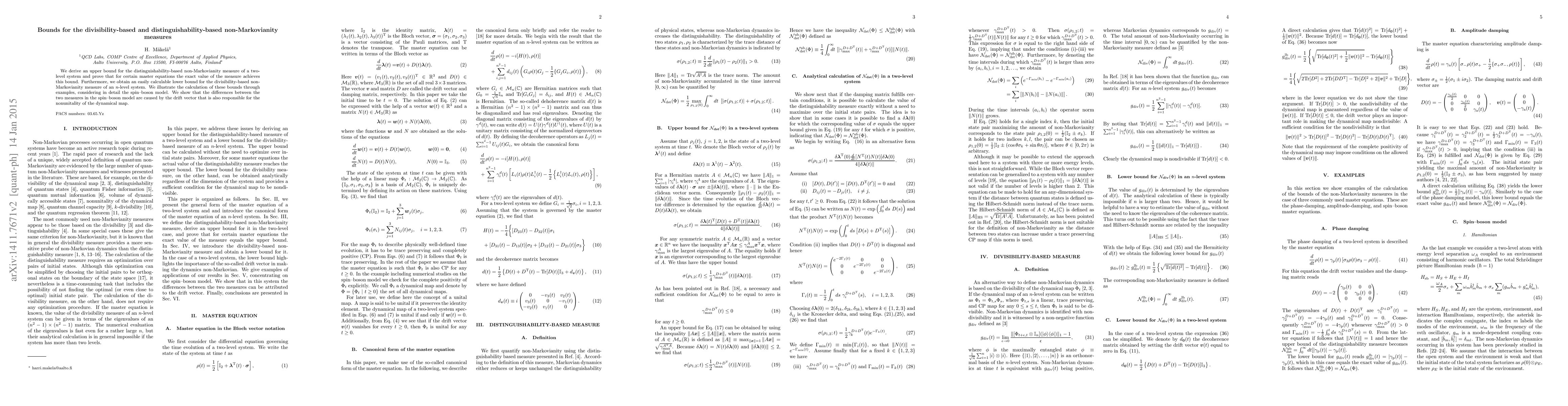 Researchers derived bounds for two non-Markovianity measures in quantum systems, providing new insights into their properties and behavior, particularly in the spin-boson model.