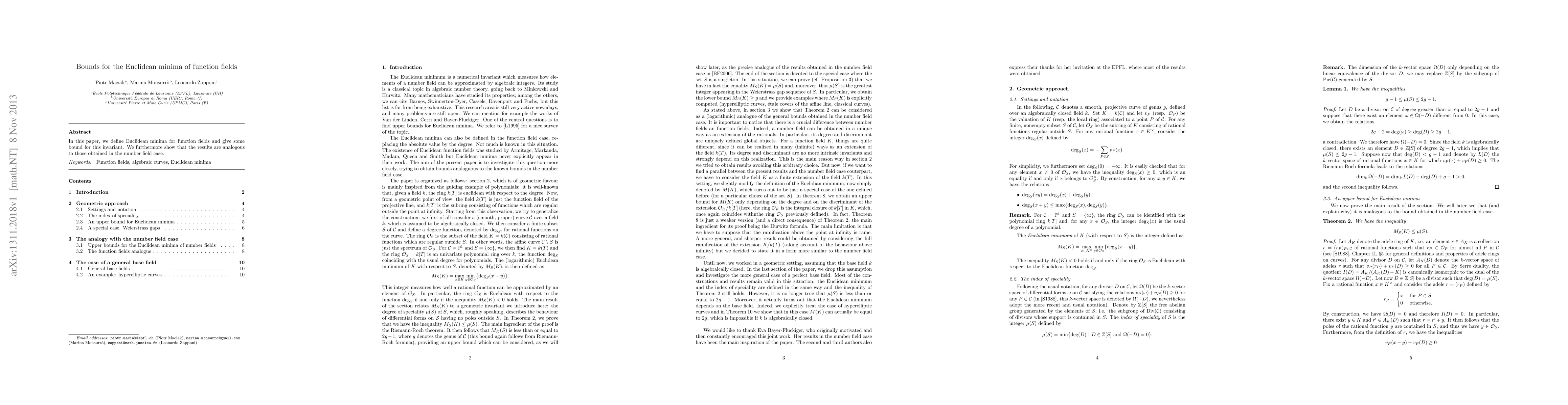 This paper introduces the concept of Euclidean minima for function fields and provides bounds for this invariant. It demonstrates that the results align with those found in the study of number fields.