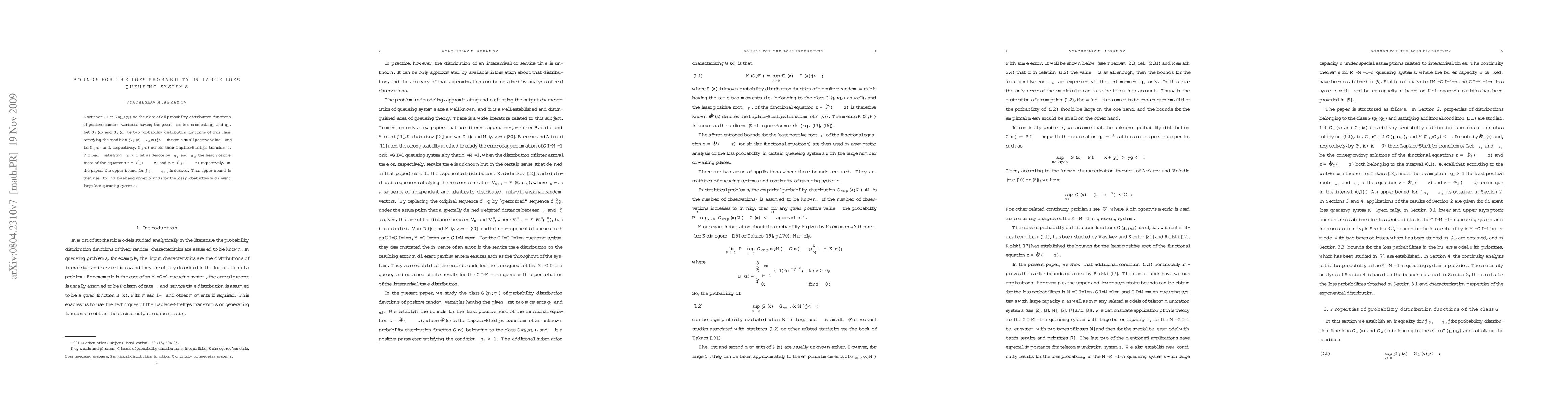 Let $\mathcal{G}(\frak{g}_1,\frak{g}_2)$ be the class of all probability distribution functions of positive random variables having the given first two moments $\frak{g}_1$ and $\frak{g}_2$. Let $G_1(x)$ and $G_2(x)$ be two probability distribution functions of this class satisfying the condition $|G_1(x)-G_2(x)|<\epsilon$ for some small positive value $\epsilon$ and let $\widehat{G}_1(s)$ and, respectively, $\widehat{G}_2(s)$ denote their Laplace-Stieltjes transforms. For real $\mu$ satisfying $\mu\frak{g}_1>1$ let us denote by $\gamma_{G_1}$ and $\gamma_{G_2}$ the least positive roots of the equations $z=\widehat{G}_1(\mu-\mu z)$ and $z=\widehat{G}_2(\mu-\mu z)$ respectively. In the paper, the upper bound for $|\gamma_{G_1}-\gamma_{G_2}|$ is derived. This upper bound is then used to find lower and upper bounds for the loss probabilities in different large loss queueing systems.