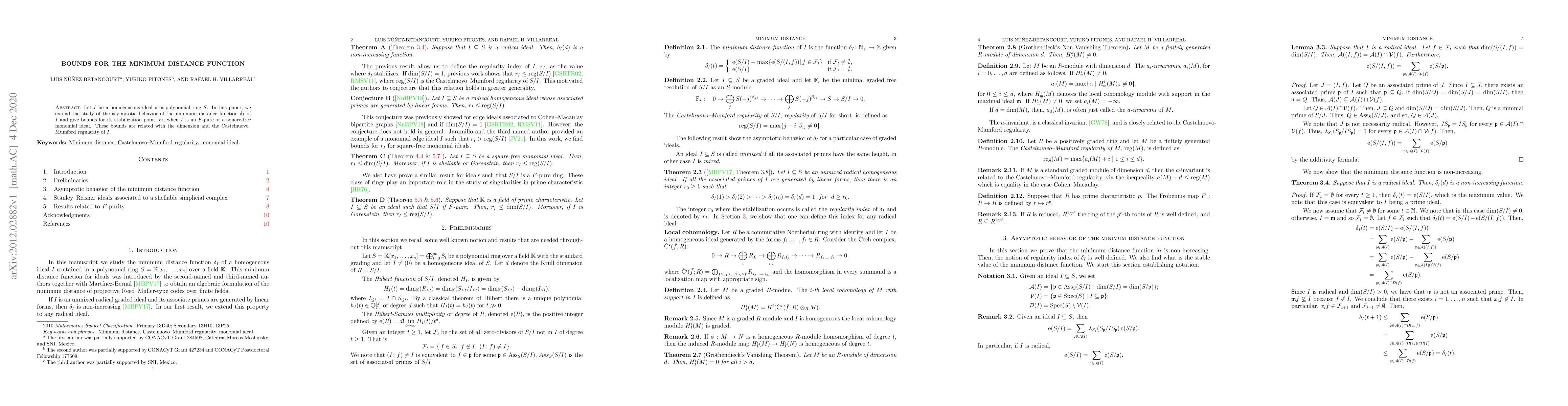 This work presents novel results on the asymptotic behavior of the minimum distance function and its relation to algebraic invariants, providing new insights into the structure of ideals and their properties.