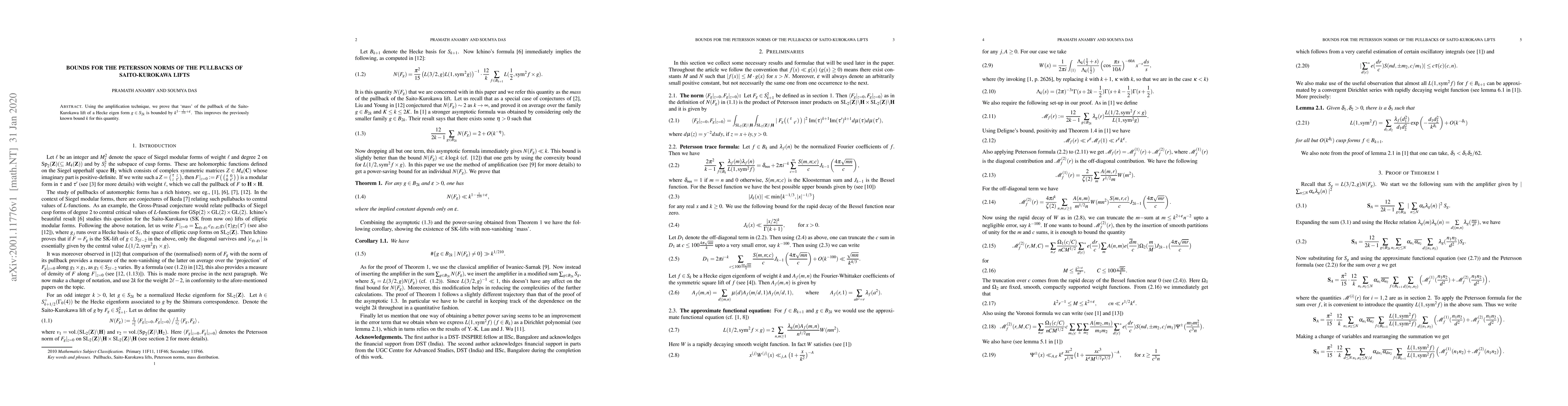 Using the amplification technique, we prove that `mass' of the pullback of the Saito-Kurokawa lift of a Hecke eigen form $g\in S_{2k}$ is bounded by $k^{1-\frac{1}{210}+\epsilon}$. This improves the previously known bound $k$ for this quantity.