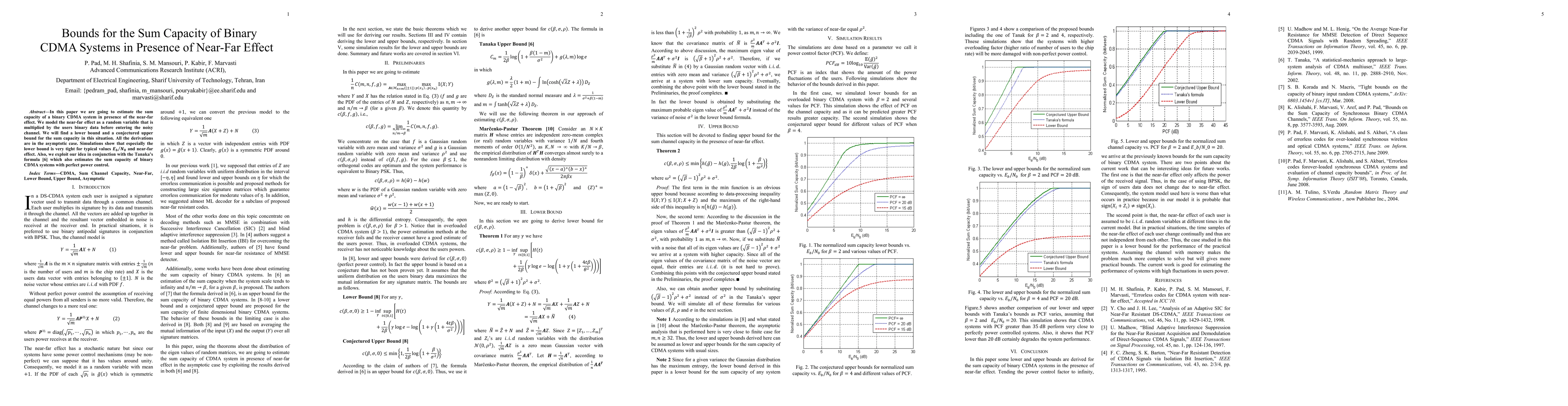 This paper estimates the sum capacity of binary CDMA systems under the near-far effect, deriving a tight lower bound and a conjectured upper bound in the asymptotic case. Simulations confirm the accuracy of the lower bound for typical conditions, and the approach is also compared with Tanaka's formula for systems with perfect power control.