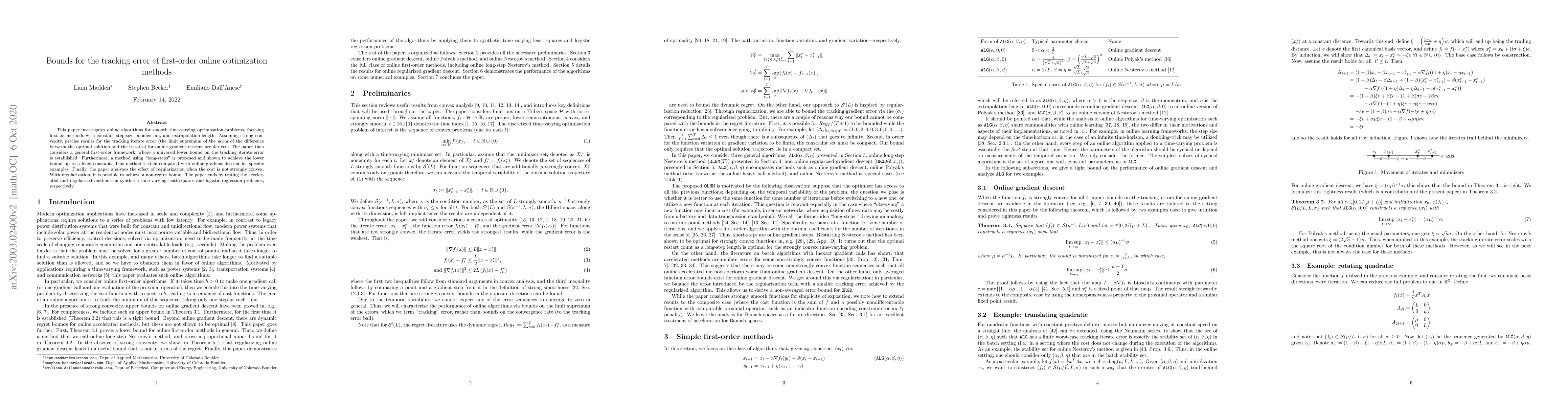 This paper derives precise bounds for the tracking error of first-order online optimization methods, establishing a universal lower bound for the tracking iterate error and proposing a "long-steps" method that achieves this bound. It also examines the impact of regularization on non-strongly convex problems and tests the methods on synthetic time-varying least-squares and logistic regression problems.