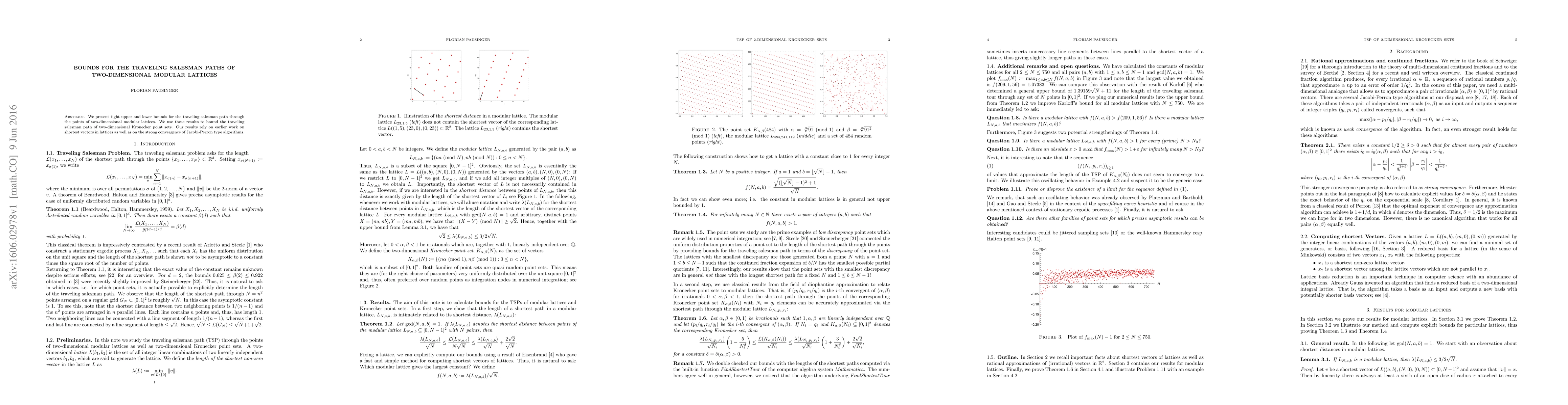 We present tight upper and lower bounds for the traveling salesman path through the points of two-dimensional modular lattices. We use these results to bound the traveling salesman path of two-dimensional Kronecker point sets. Our results rely on earlier work on shortest vectors in lattices as well as on the strong convergence of Jacobi-Perron type algorithms.