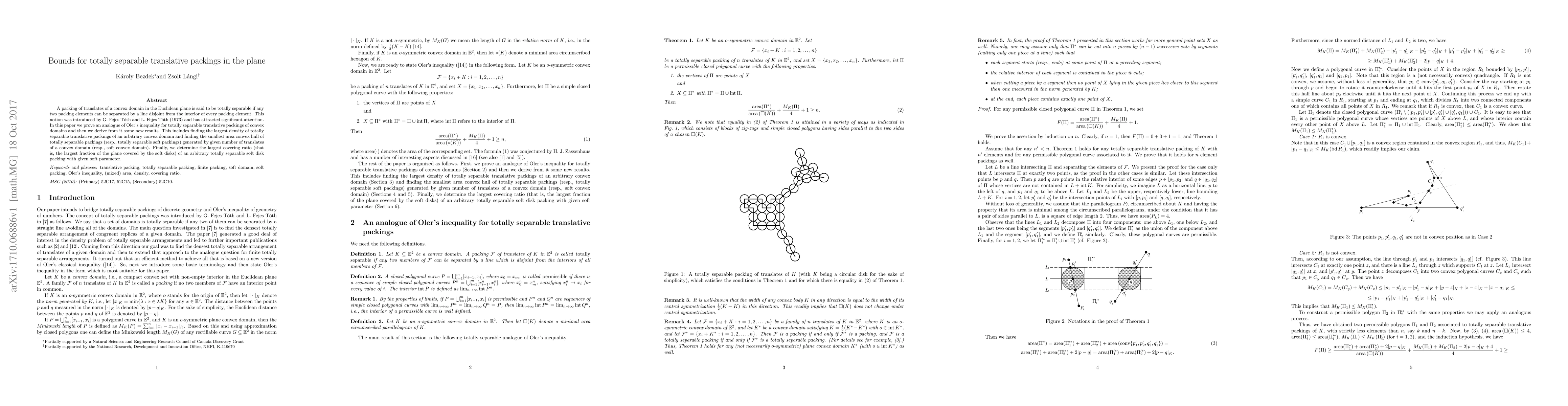 This paper establishes an analogue of Oler's inequality for totally separable translative packings of convex domains in the plane, deriving new results on the largest density and smallest area convex hull of such packings, and determining the largest covering ratio for totally separable soft disk packings.