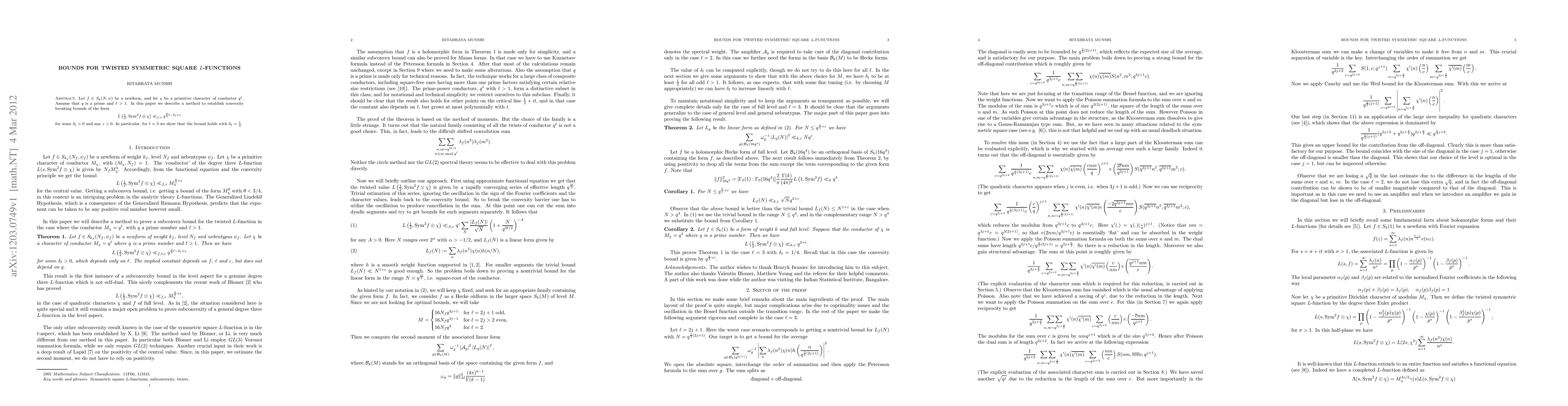 The paper introduces a detailed method for bounding twisted symmetric square L-functions, involving reciprocity, Poisson summation, and careful analysis of character sums and integrals.