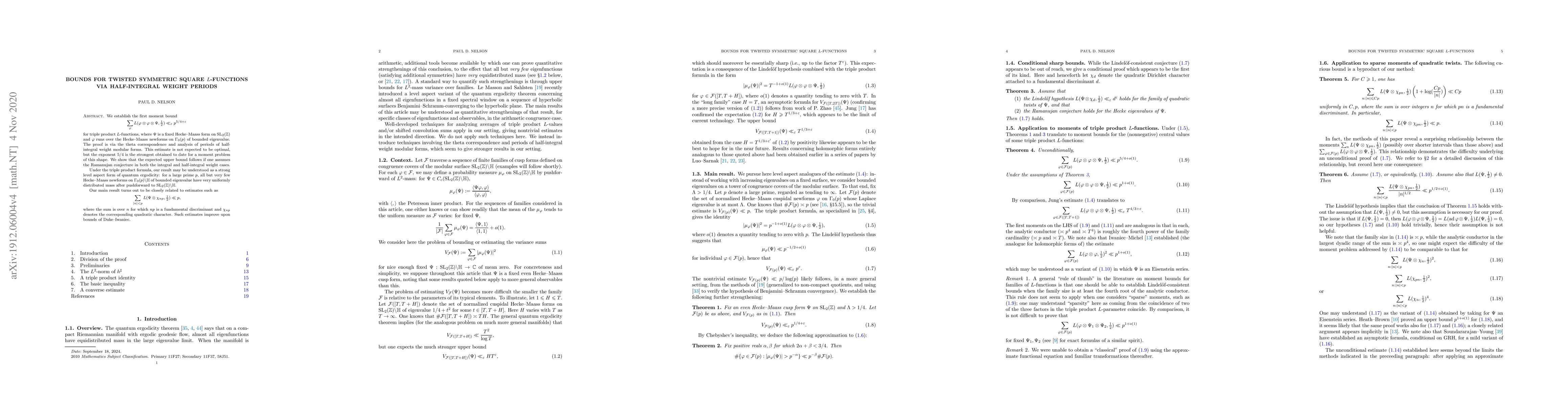 The paper establishes a bound for twisted symmetric square $L$-functions via half-integral weight periods, showing that nearly all Hecke-Maass newforms of bounded eigenvalue have uniformly distributed mass after pushforward to $ ext{SL}_2(bb Z) ackslash bb H$.