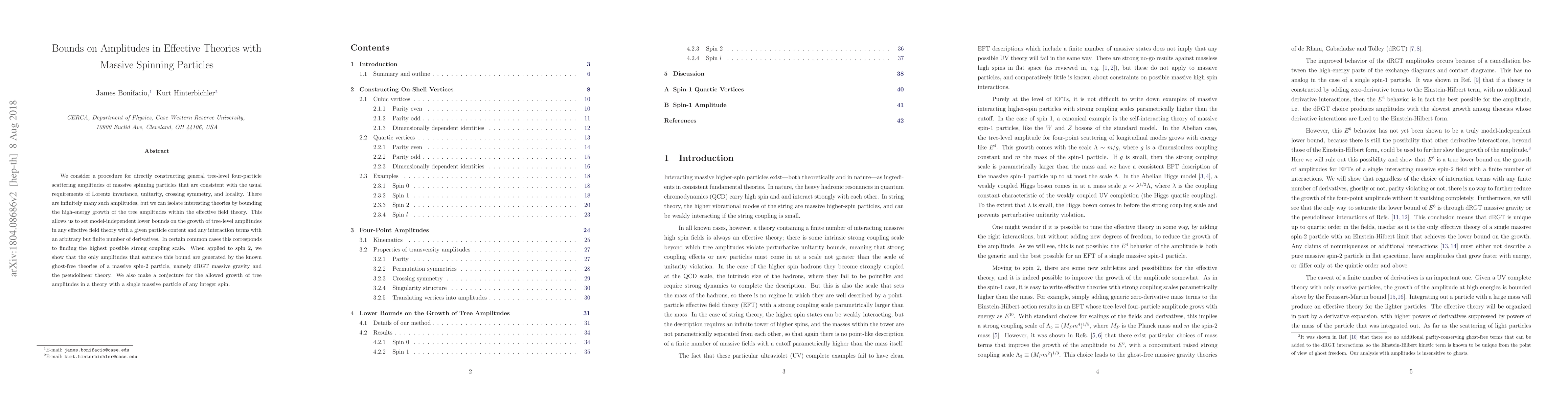 We consider a procedure for directly constructing general tree-level four-particle scattering amplitudes of massive spinning particles that are consistent with the usual requirements of Lorentz invariance, unitarity, crossing symmetry, and locality. There are infinitely many such amplitudes, but we can isolate interesting theories by bounding the high-energy growth of the tree amplitudes within the effective field theory. This allows us to set model-independent lower bounds on the growth of tree-level amplitudes in any effective field theory with a given particle content and any interaction terms with an arbitrary but finite number of derivatives. In certain common cases this corresponds to finding the highest possible strong coupling scale. When applied to spin 2, we show that the only amplitudes that saturate this bound are generated by the known ghost-free theories of a massive spin-2 particle, namely dRGT massive gravity and the pseudolinear theory. We also make a conjecture for the allowed growth of tree amplitudes in a theory with a single massive particle of any integer spin.