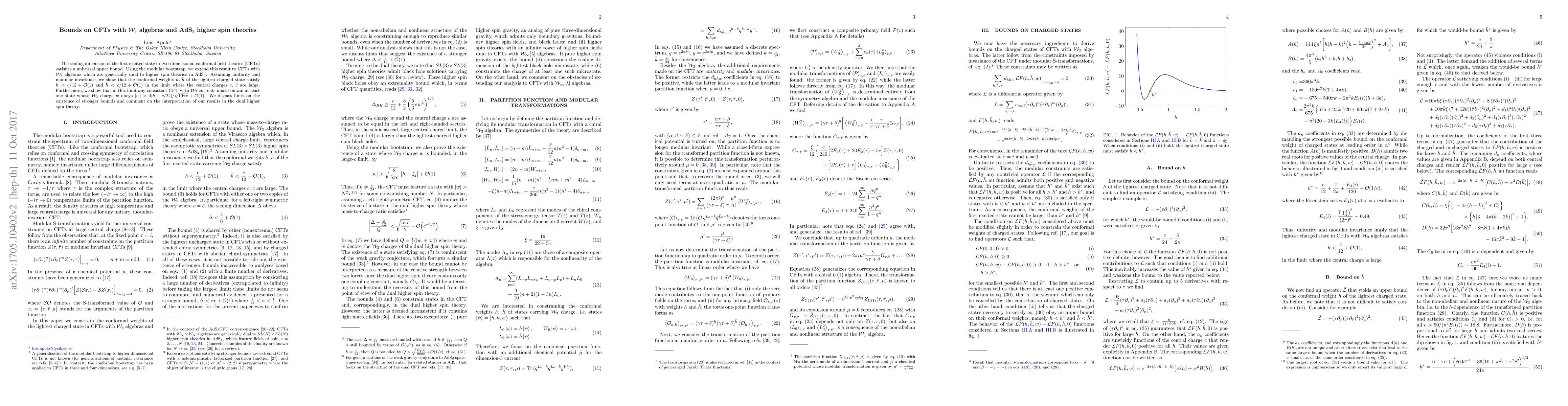 The scaling dimension of the first excited state in two-dimensional conformal field theories (CFTs) satisfies a universal upper bound. Using the modular bootstrap, we extend this result to CFTs with $W_3$ algebras which are generically dual to higher spin theories in AdS$_3$. Assuming unitarity and modular invariance, we show that the conformal weights $h$, $\bar{h}$ of the lightest charged state satisfy $h < c/12 + O(1)$ and $\bar{h} < \bar{c}/12 + O(1)$ in the limit where the central charges $c$, $\bar{c}$ are large. Furthermore, we show that in this limit any consistent CFT with $W_3$ currents must contain at least one state whose $W_3$ charge $w$ obeys $|w| > 4 |h-c/24| /\sqrt{10 \pi c} + O(1)$. We discuss hints on the existence of stronger bounds and comment on the interpretation of our results in the dual higher spin theory.