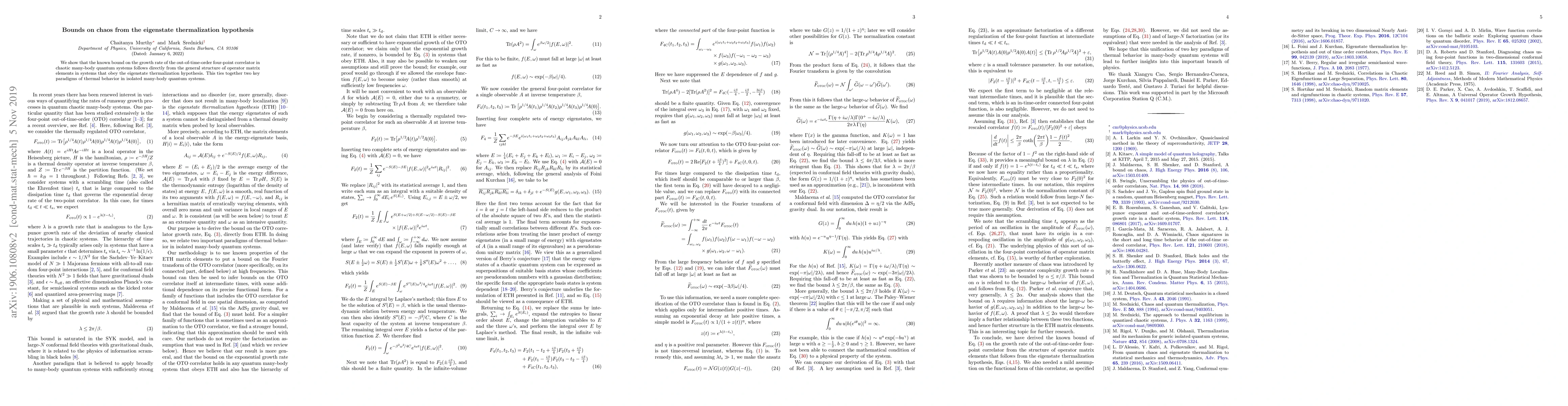 This paper demonstrates that the established limit on the growth rate of the out-of-time-order correlator in chaotic quantum systems is inherently linked to the eigenstate thermalization hypothesis, thereby unifying two fundamental concepts of thermal behavior in isolated quantum systems.