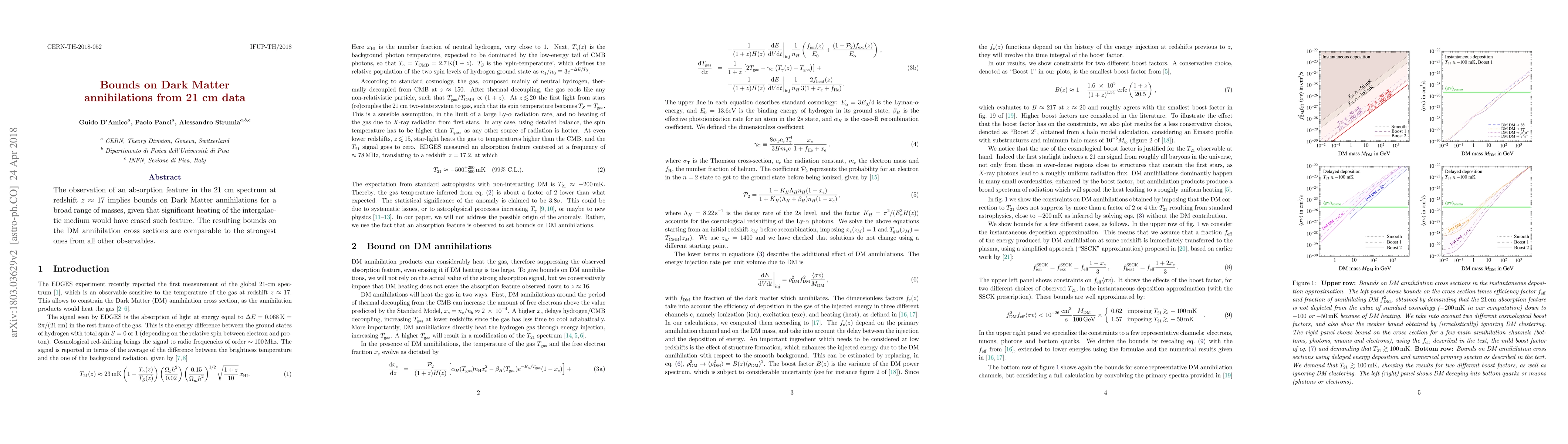 This paper establishes limits on Dark Matter annihilations using 21 cm spectral data, showing that an absorption feature at redshift $z\approx 17$ constrains annihilations across a wide mass range. The derived bounds on DM annihilation cross sections are as stringent as those from other observational methods.
