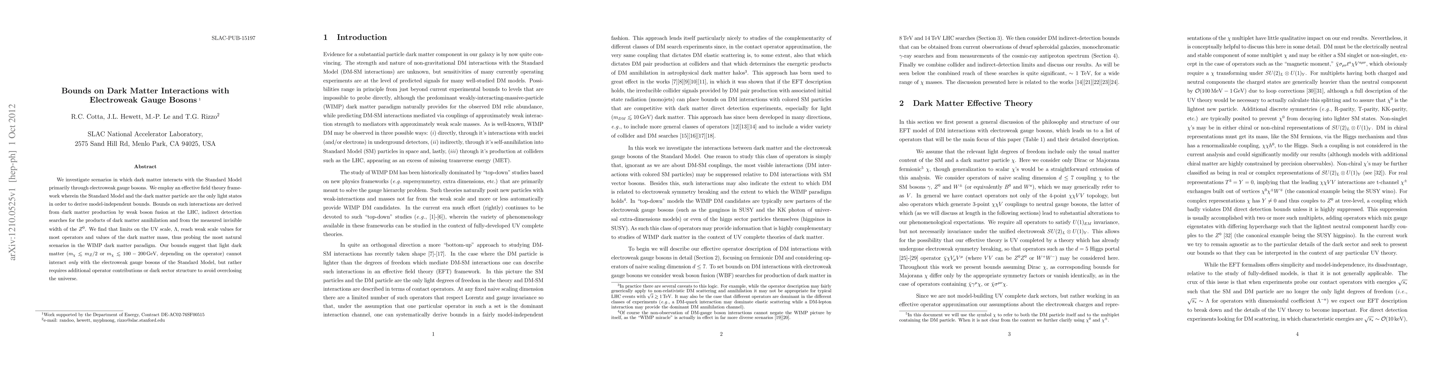 This paper derives model-independent bounds on dark matter interactions with electroweak gauge bosons using an effective field theory framework. It finds that light dark matter cannot interact solely with these bosons, necessitating additional contributions or dark sector structures to avoid overclosing the universe.