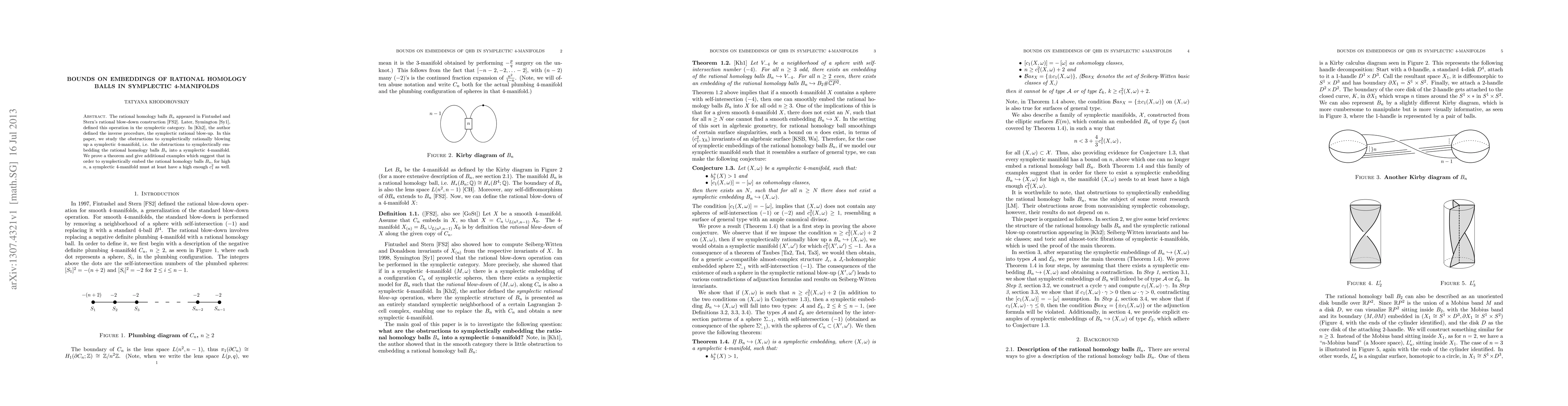 The rational homology balls $B_n$ appeared in Fintushel and Stern's rational blow-down construction [FS2]. Later, Symington [Sy1], defined this operation in the symplectic category. In [Kh2], the author defined the inverse procedure, the symplectic rational blow-up. In this paper, we study the obstructions to symplectically rationally blowing up a symplectic 4-manifold, i.e. the obstructions to symplectically embedding the rational homology balls $B_n$ into a symplectic 4-manifold. We prove a theorem and give additional examples which suggest that in order to symplectically embed the rational homology balls $B_n$, for high n, a symplectic 4-manifold must at least have a high enough $c_1^2$ as well.