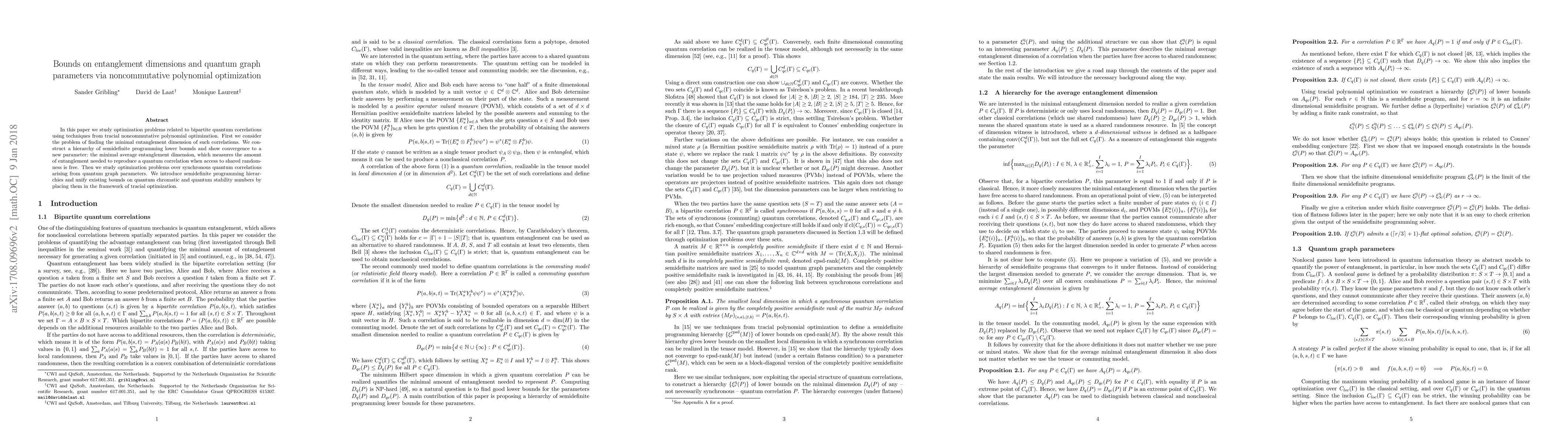 Researchers developed a new method to quantify entanglement in quantum correlations using noncommutative polynomial optimization, providing bounds on minimal entanglement dimension and quantum graph parameters.