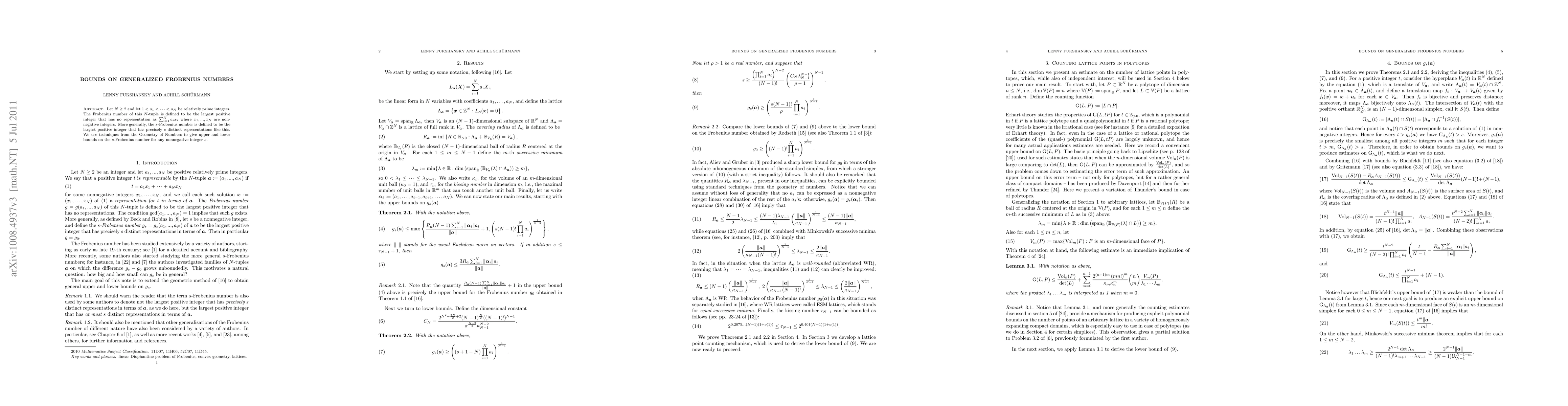 Let $N \geq 2$ and let $1 < a_1 < ... < a_N$ be relatively prime integers. The Frobenius number of this $N$-tuple is defined to be the largest positive integer that has no representation as $\sum_{i=1}^N a_i x_i$ where $x_1,...,x_N$ are non-negative integers. More generally, the $s$-Frobenius number is defined to be the largest positive integer that has precisely $s$ distinct representations like this. We use techniques from the Geometry of Numbers to give upper and lower bounds on the $s$-Frobenius number for any nonnegative integer $s$.