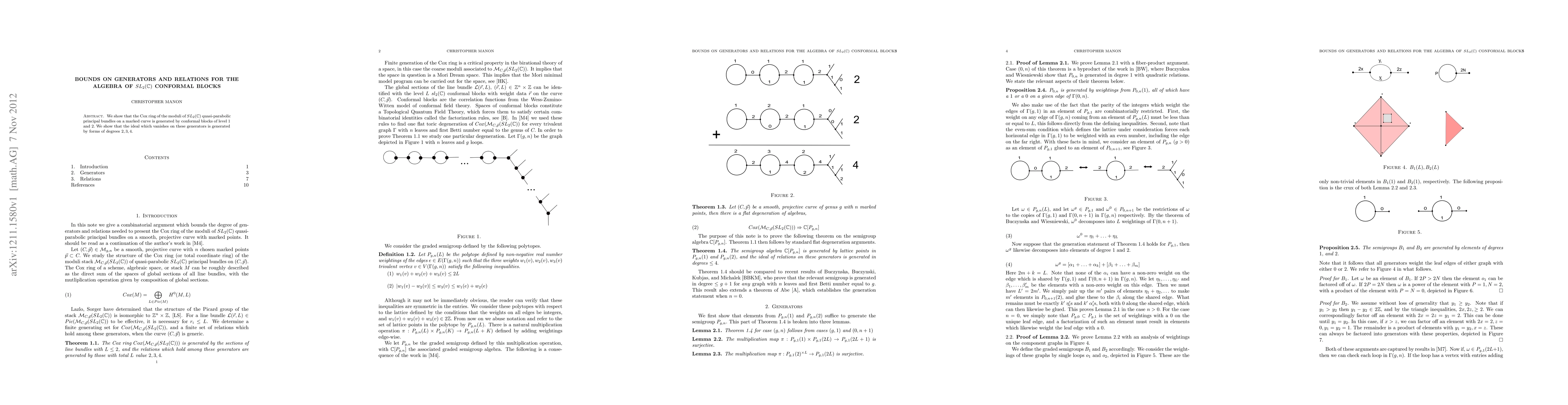 This paper demonstrates that the Cox ring of $SL_2(\C)$ quasi-parabolic principal bundles is generated by conformal blocks of level 1 and 2. It further establishes that the ideal vanishing on these generators is formed by forms of degrees 2, 3, and 4.