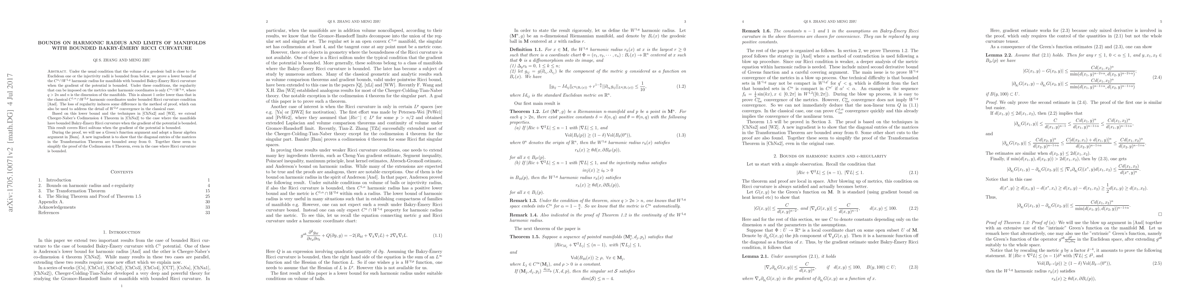 This paper establishes a lower bound for the harmonic radius of manifolds with bounded Bakry-Emery Ricci curvature under specific volume and injectivity conditions. It also extends Cheeger-Naber's Codimension 4 Theorem to such manifolds, leveraging new techniques involving Green's functions and linear algebra.