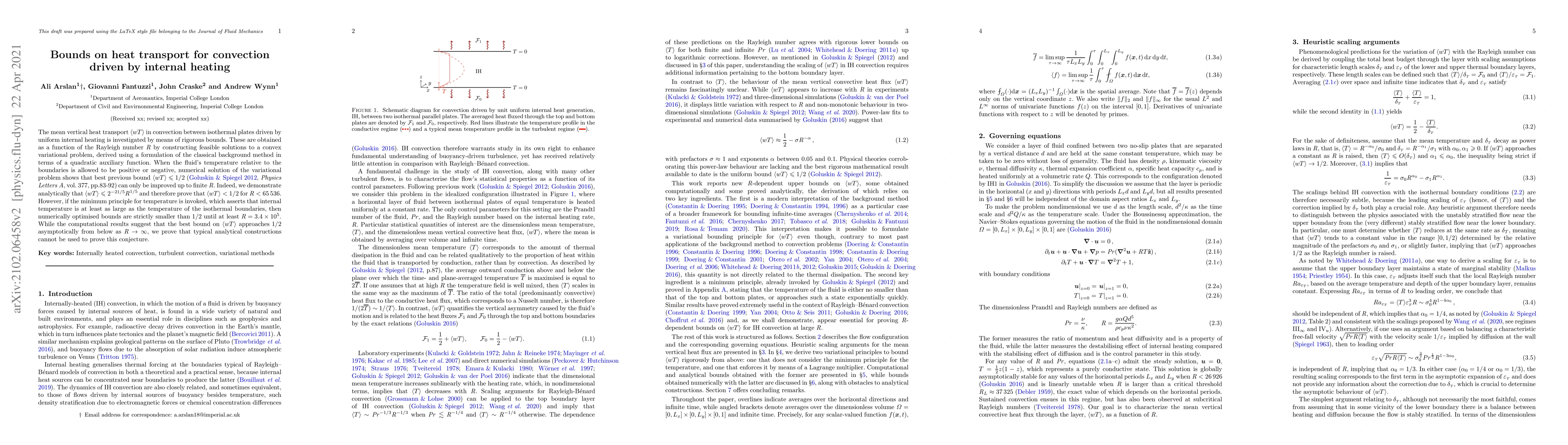 The mean vertical heat transport $\langle wT \rangle$ in convection between isothermal plates driven by uniform internal heating is investigated by means of rigorous bounds. These are obtained as a function of the Rayleigh number $R$ by constructing feasible solutions to a convex variational problem, derived using a formulation of the classical background method in terms of quadratic auxiliary functions. When the fluid's temperature relative to the boundaries is allowed to be positive or negative, numerical solution of the variational problem shows that best previous bound $\langle wT \rangle \leq 1/2$ can only be improved up to finite $R$. Indeed, we demonstrate analytically that $ \langle wT \rangle \leq 2^{-21/5} R^{1/5}$ and therefore prove that $\langle wT\rangle< 1/2$ for $R < 65\,536$. However, if the minimum principle for temperature is invoked, which asserts that internal temperature is at least as large as the temperature of the isothermal boundaries, then numerically optimised bounds are strictly smaller than $1/2$ until at least $R =3.4\times 10^{5}$. While the computational results suggest that the best bound on $\langle wT\rangle$ approaches $1/2$ asymptotically from below as $R\rightarrow \infty$, we prove that typical analytical constructions cannot be used to prove this conjecture.