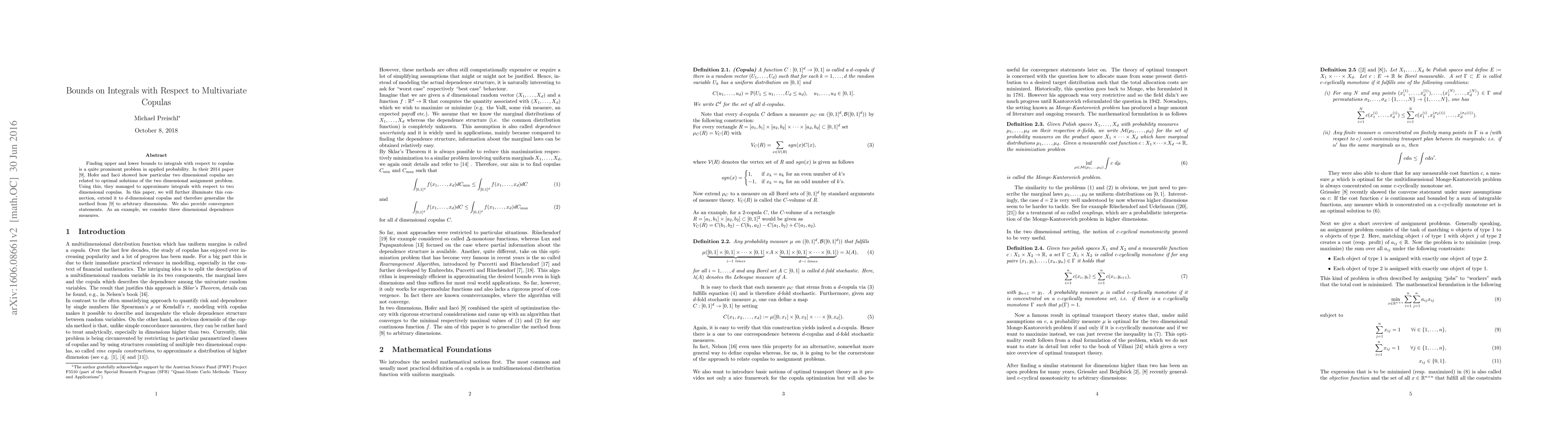 Researchers extend a method for approximating integrals with respect to copulas to arbitrary dimensions, providing bounds and convergence statements for use in applied probability.
