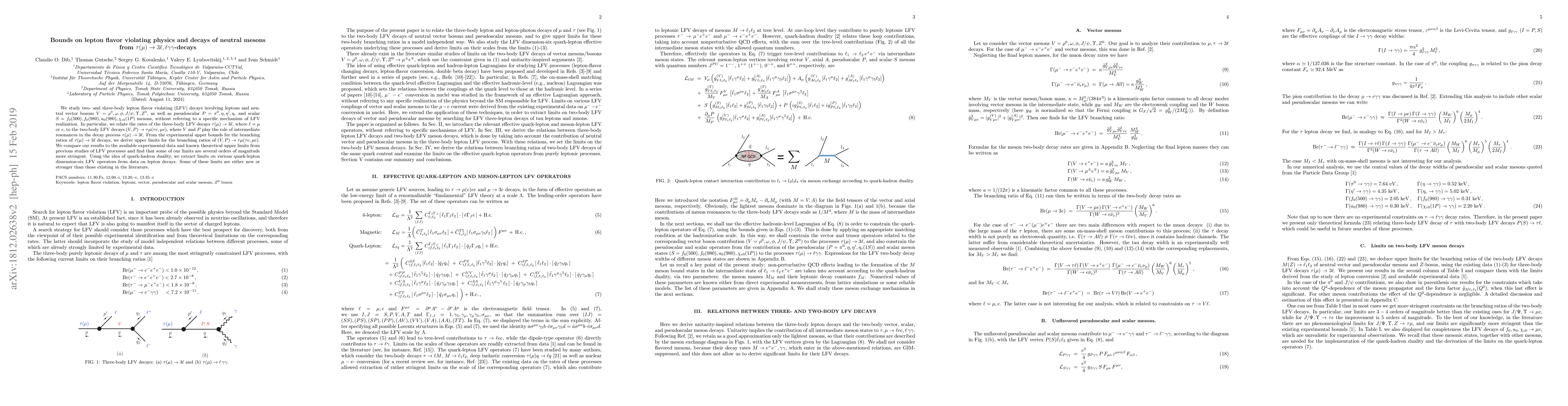 We study two- and three-body lepton flavor violating (LFV) decays involving leptons and neutral vector bosons $V=\rho^0, \omega, \phi, J/\psi, \Upsilon, Z^0$, as well as pseudo-scalar $P=\pi^0, \eta, \eta', \eta_c$ and scalar $S=f_0(500), f_0(980), a_0(980), \chi_{c0}(1P)$ mesons, without referring to a specific mechanism of LFV realization. In particular, we relate the rates of the three-body LFV decays $\tau(\mu) \to 3 \ell$, where $\ell = \mu$ or $e$, to the two-body LFV decays $(V,P) \to \tau\mu(\tau e, \mu e)$, where $V$ and $P$ play the role of intermediate resonances in the decay process $\tau(\mu) \to 3 \ell$. From the experimental upper bounds for the branching ratios of $\tau(\mu) \to 3 \ell$ decays, we derive upper limits for the branching ratios of $(V,P) \to \tau\mu(\tau e, \mu e)$. We compare our results to the available experimental data and known theoretical upper limits from previous studies of LFV processes, and find that some of our limits are several orders of magnitude more stringent. Using the idea of quark-hadron duality, we extract limits on various quark-lepton dimension-six LFV operators from data on lepton decays. Some of these limits are either new or stronger than those existing in the literature.